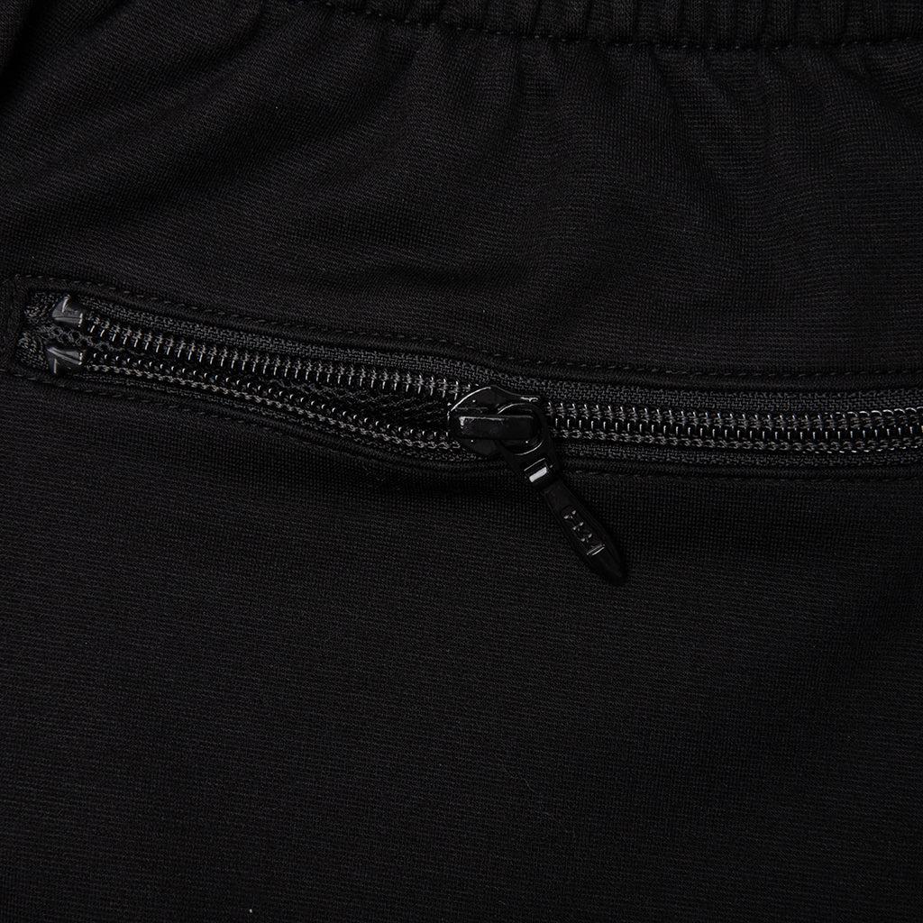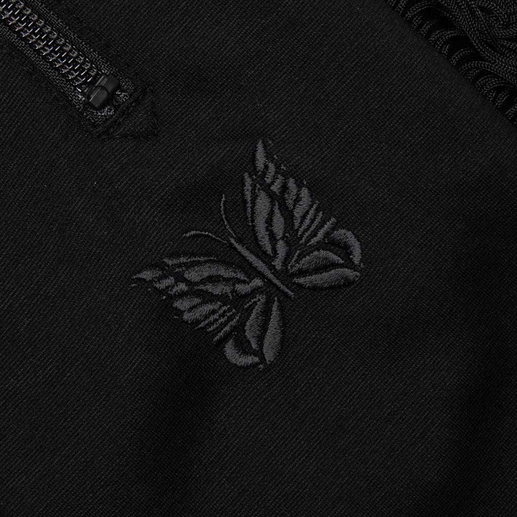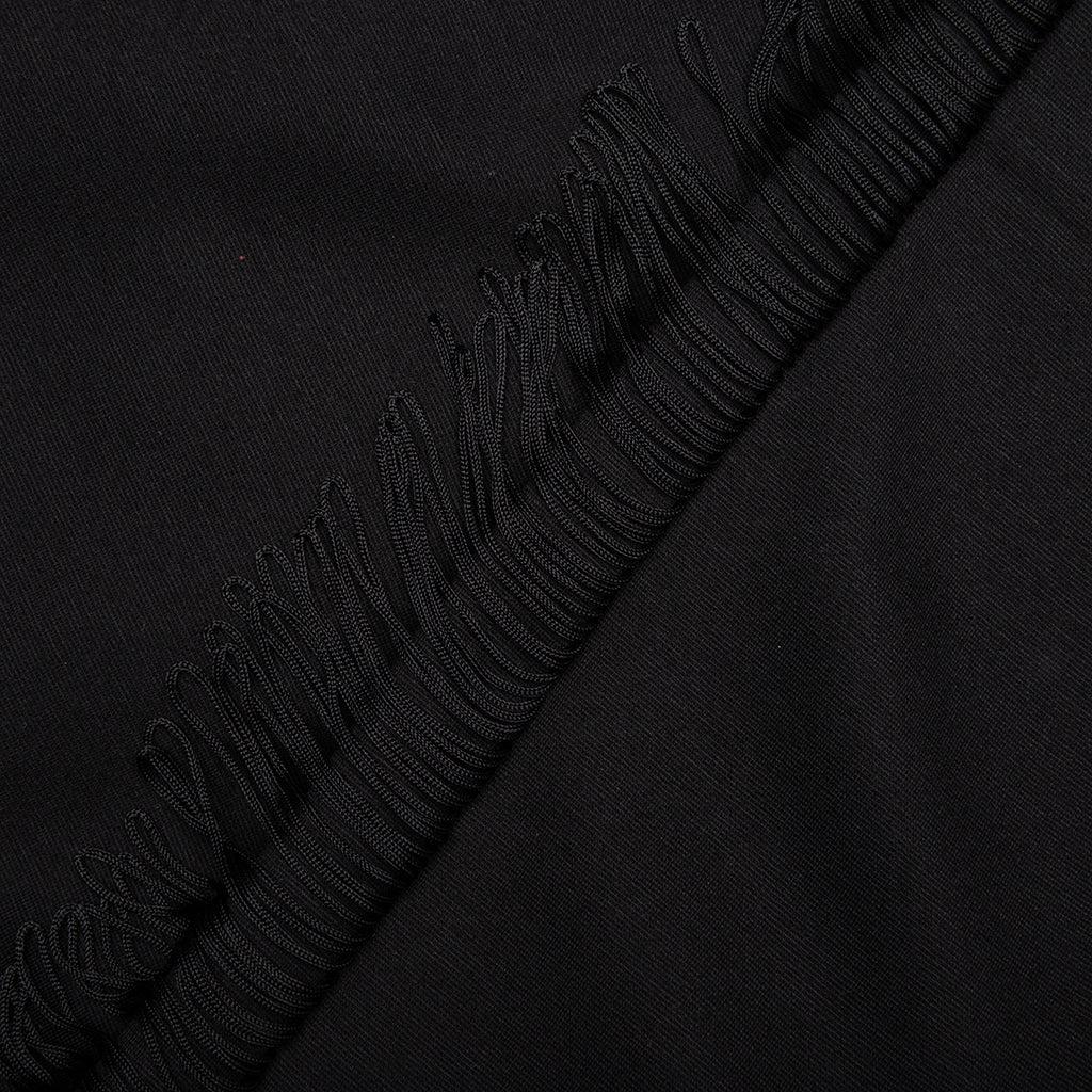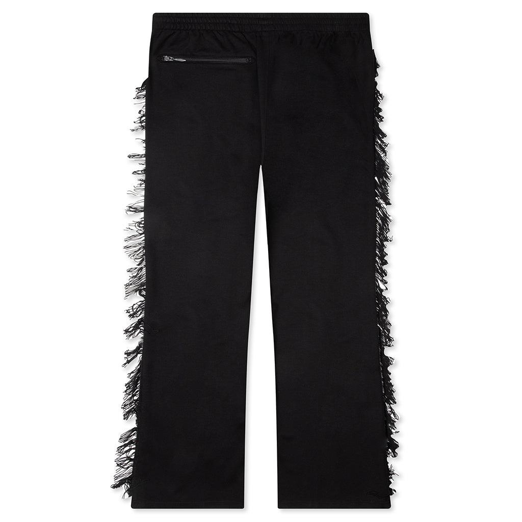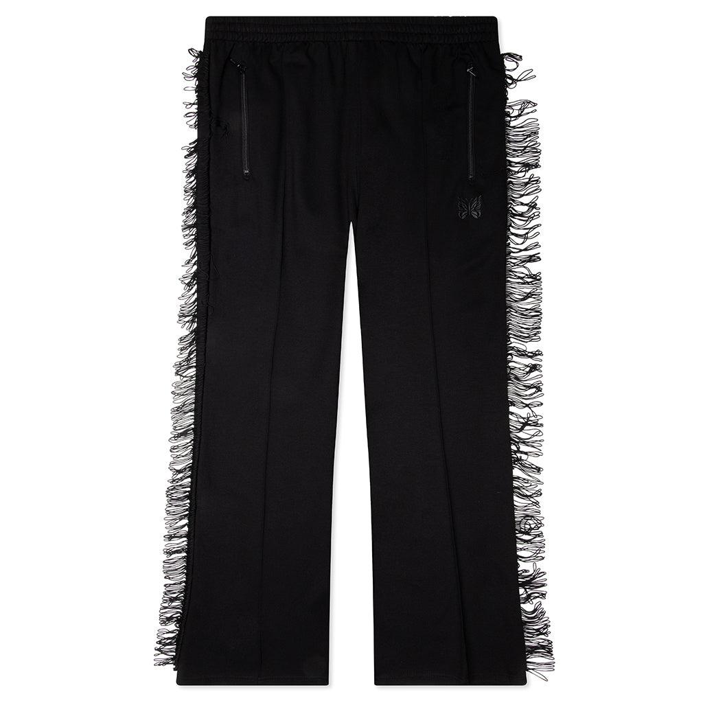 The Needles Rayon Jersey Fringe Boot-Cut Track Pant makes an elevated statement in any apparel collection, crafted from a fluid blend of Rayon, Nylon, and Polyurethane for a soft, flexible fit. Designed with a boot-cut silhouette, this standout piece features fringe detailing along each leg, adding dynamic movement to its sleek profile. Zippered side pockets with mesh interiors and a zippered back pocket offer practical storage, while the elasticized waistband with drawstring ensures all-day comfort. Finished with Needles' embroidered logo below the left pocket, this Japan-made style fuses sport, fashion, and edge. Body: 69% Rayon, 29% Nylon, 2% Polyurethane Fringe: 100% Rayon Embroidered logo below left pocket Boot-cut fit with fringe detailing Zippered side pockets with mesh interior Zippered back pocket Elasticized waistband with drawstring Made in Japan Style No: QV335-C QV335 C BLAC
