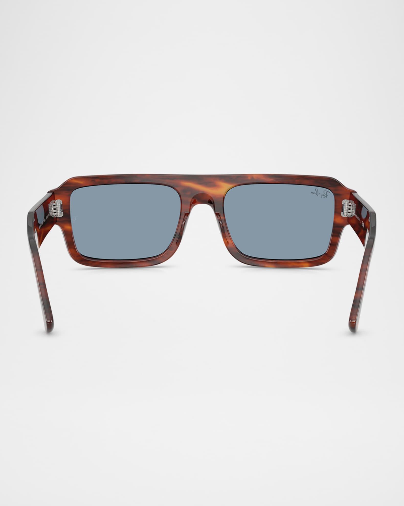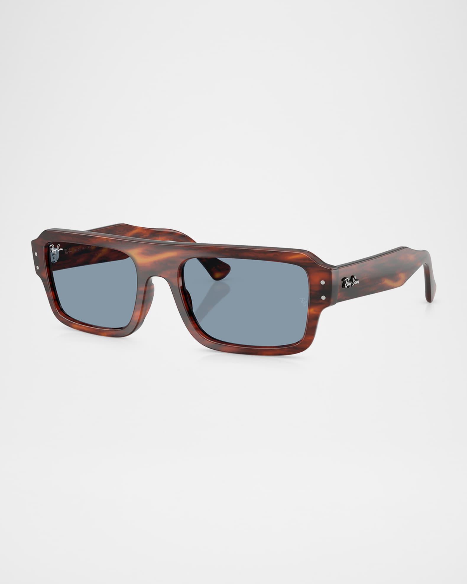 Ray-Ban sunglasses in striped Havana acetate provide versatile style and generous coverage Eye/bridge/temple (in mm): 53-20-145 High bridge fit Rectangular plastic frames Solid lenses 100% UVA/UVB protection Made in Italy Proposition 65 warning for California residents