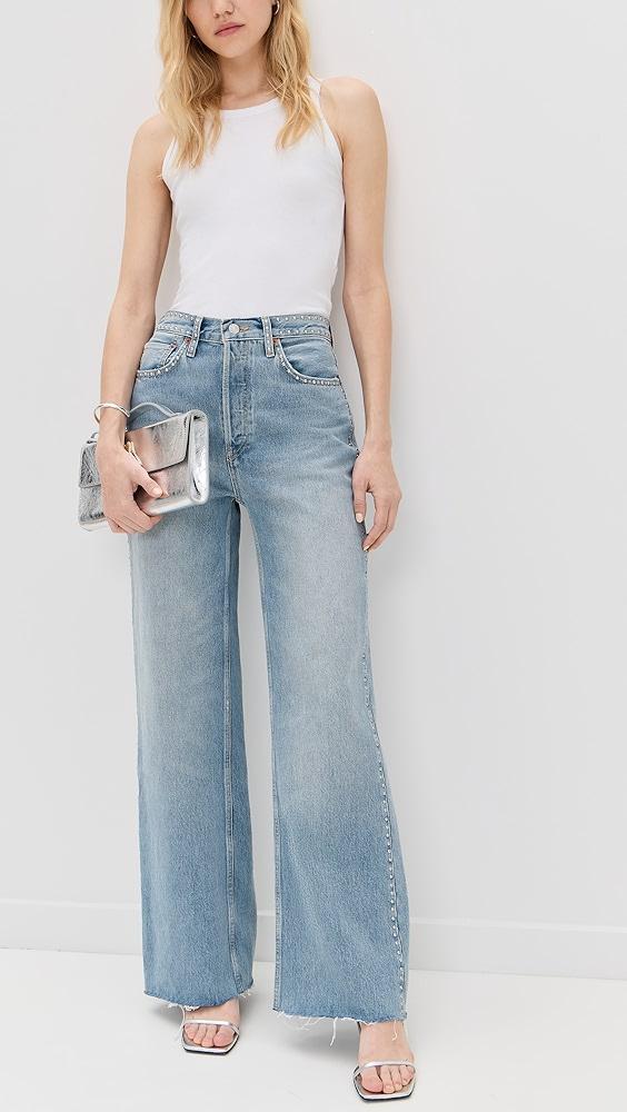 RE/DONE Studded 70s Ultra High Rise Wide Leg Jeans | Shopbop
