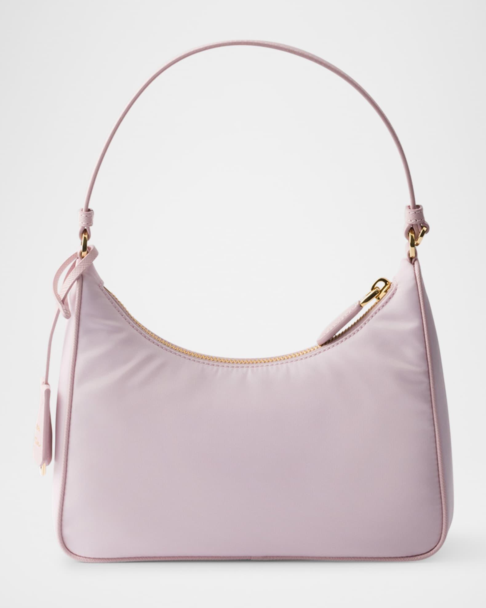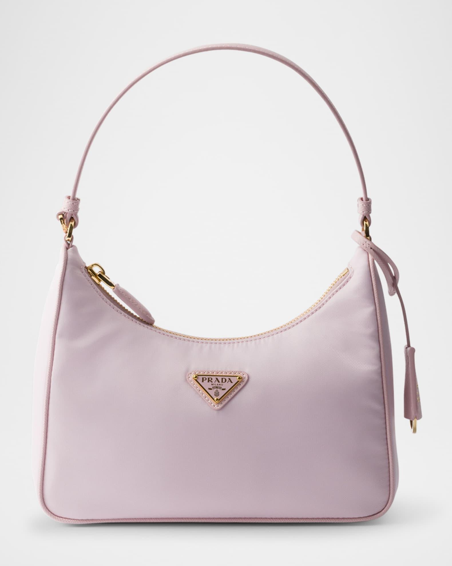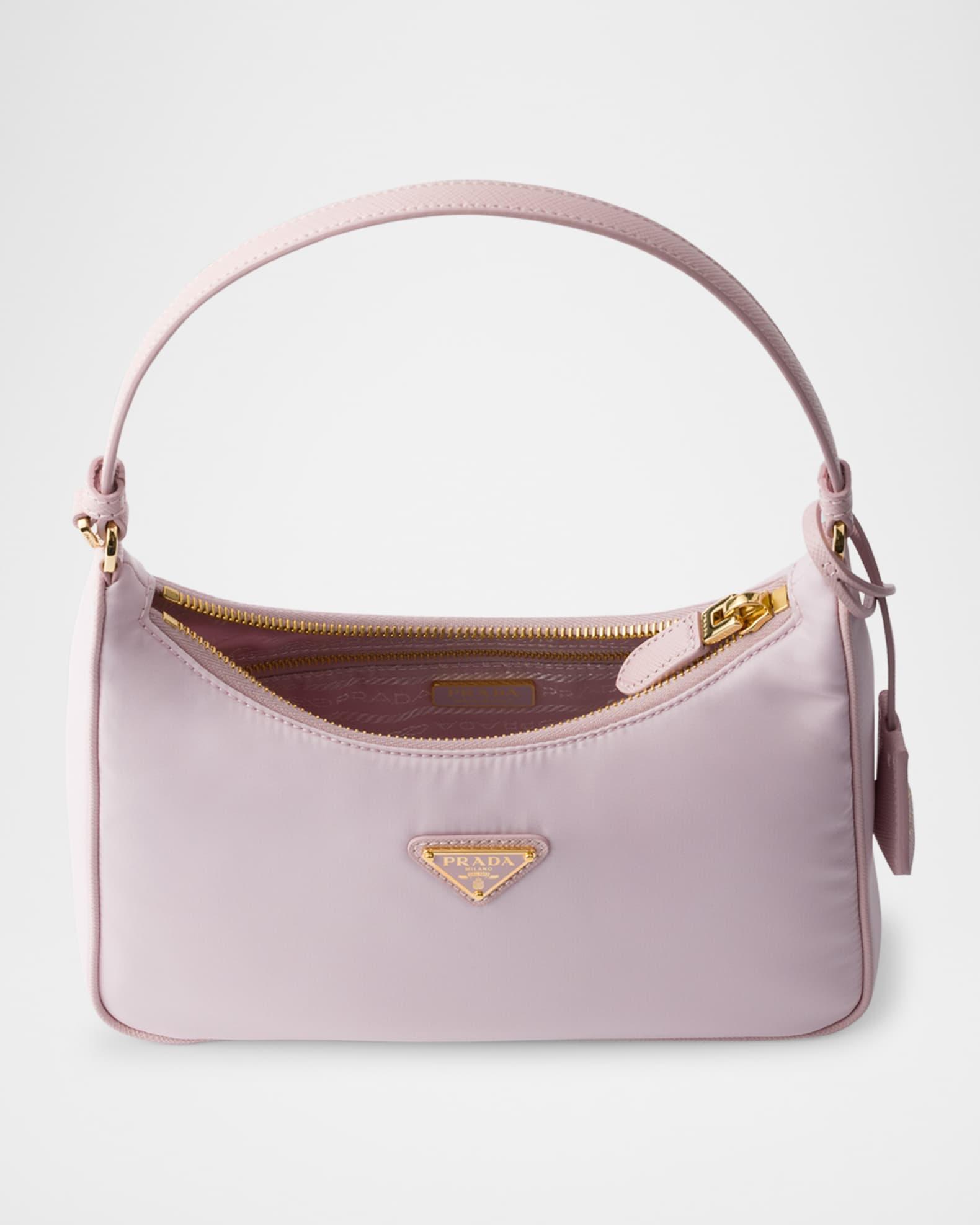 Prada "Re-Edition 2005" shoulder bag in nylon and leather features the signature enameled metal triangle logo on the front Shoulder strap with logo tag Zip closure Interior, one zip pocket Re-Nylon logo lining Approx. 7.1"H x 8.7"W x 2.6"D Imported
