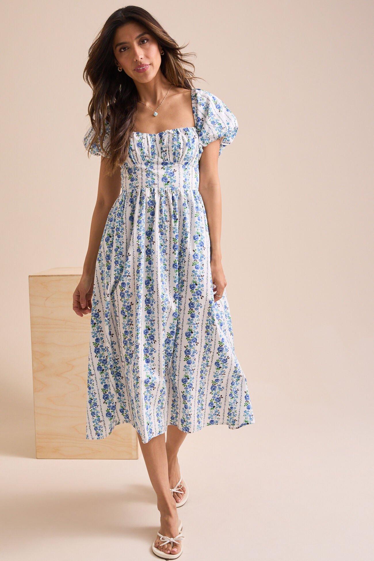Embrace effortless elegance with this floral maxi dress, showcasing romantic puff sleeves and a flattering fit-and-flare silhouette. The vibrant print adds fresh charm, while the flowy design creates graceful movement. Perfect for weddings, garden parties, or special occasions!