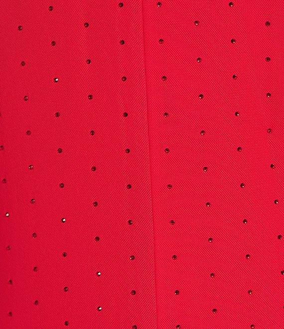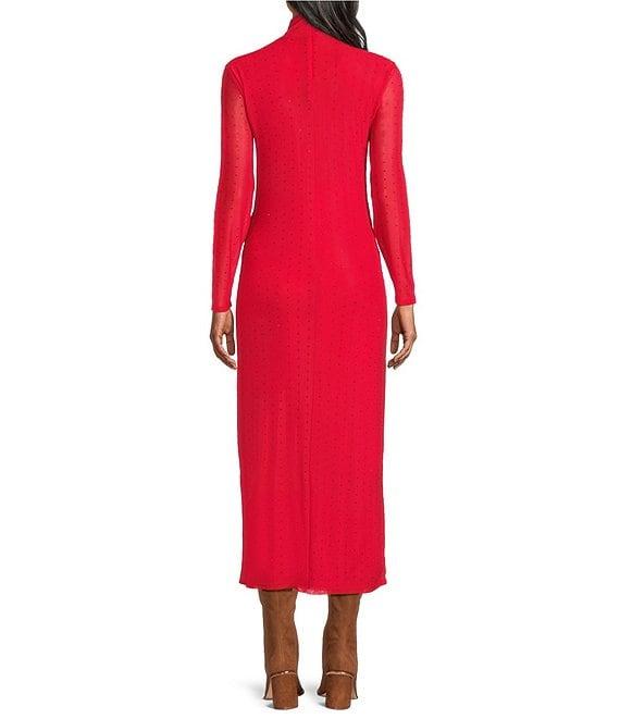 Reba Jersey Knit Jeweled Mesh Mock Neck Long Sleeve Sheath Dress