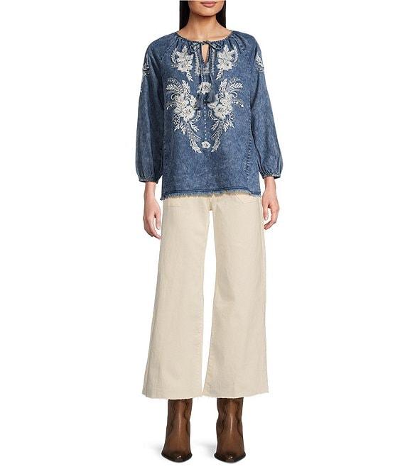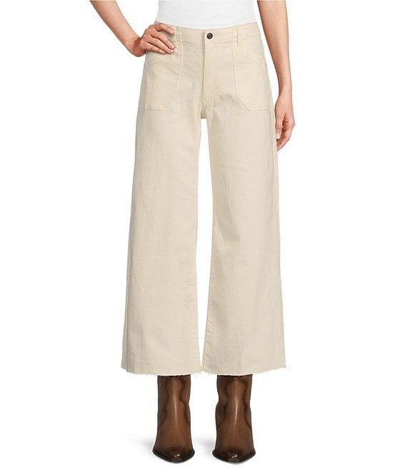 From Reba, this jean features: Denim fabrication Wide-leg silhouette Front & back patch pockets Cropped length Front button and zipper closure Approx. 27" inseam Cotton/spandex Machine wash/tumble dry Imported.