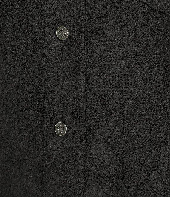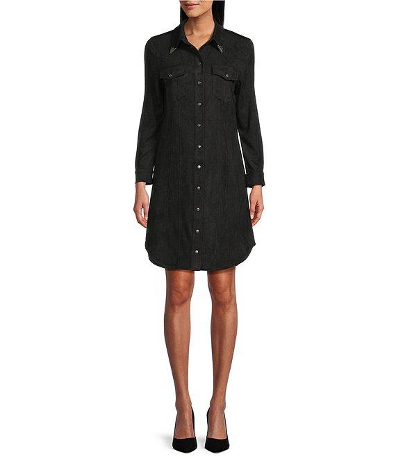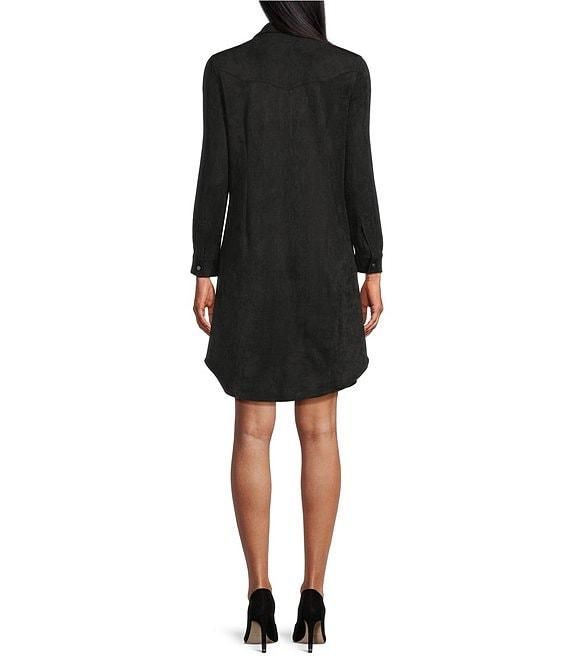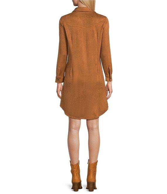 Reba Mesa Faux Suede Point Collar Long Sleeve Shirttail Hem Shirt Dress