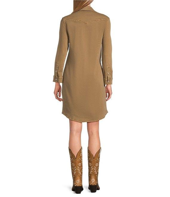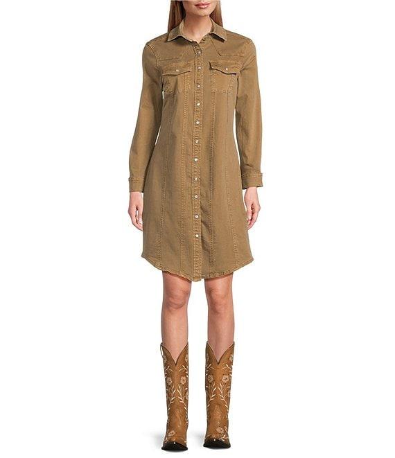 Reba Mesa Stretch Denim Point Collar Long Sleeve Shirt Dress