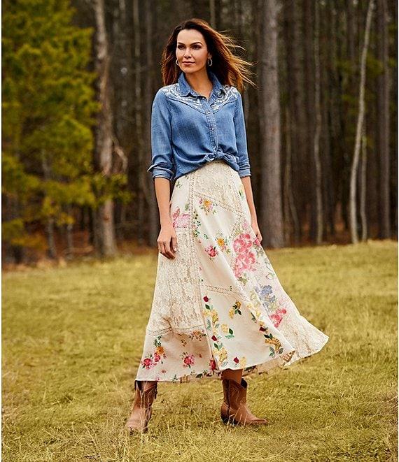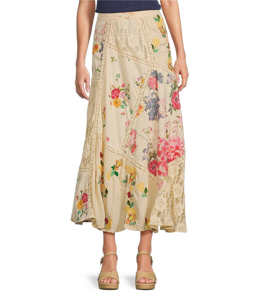 Reba Paige Floral Patchwork A-Line Midi Skirt