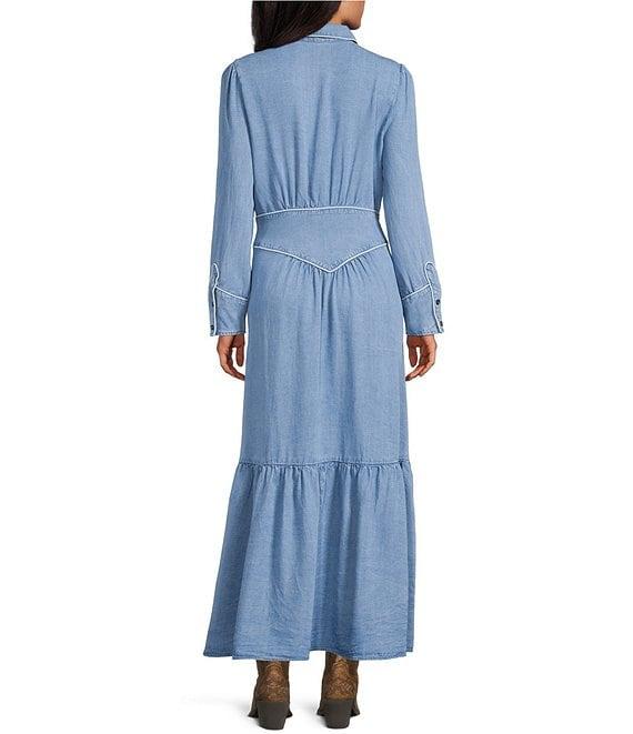 Reba Ranchland Blues Point Collar Long Sleeve A-Line Maxi Dress