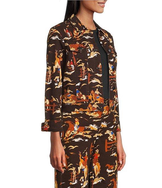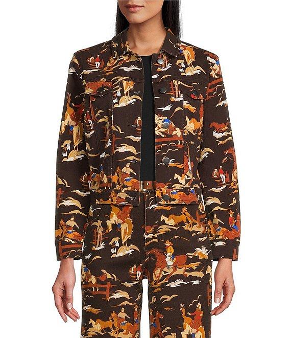 Reba Rodeo Cowboy Print Point Collar Long Sleeve Coordinating Jacket