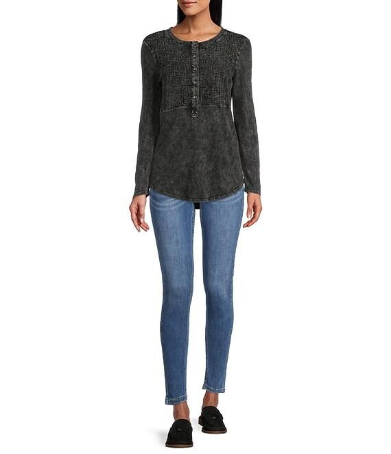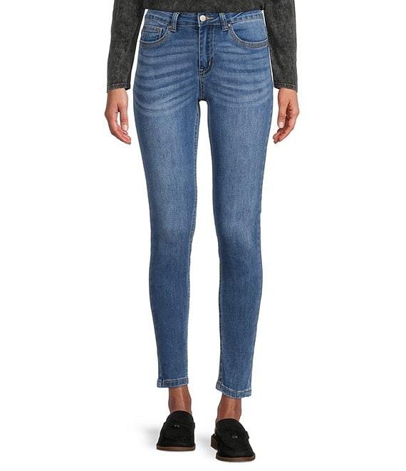From Reba, these jeans feature: Denim fabrication ankle skinny silhouette Belt loops on waistband 5 pocket styling Front fly zip and button closure Approx. 28" inseam Cotton/polyester/spandex Machine wash Imported.