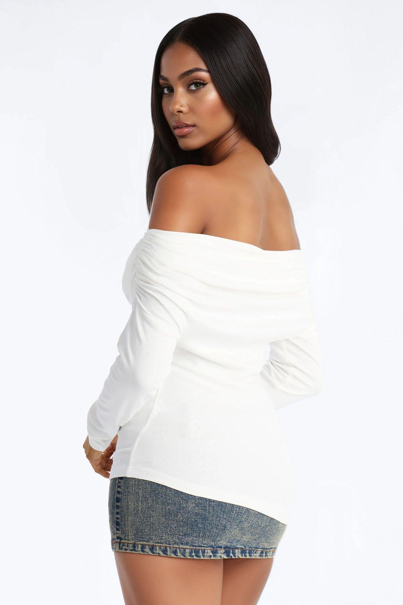 Rebecca Off Shoulder Ruched Long Sleeve Top - White Female