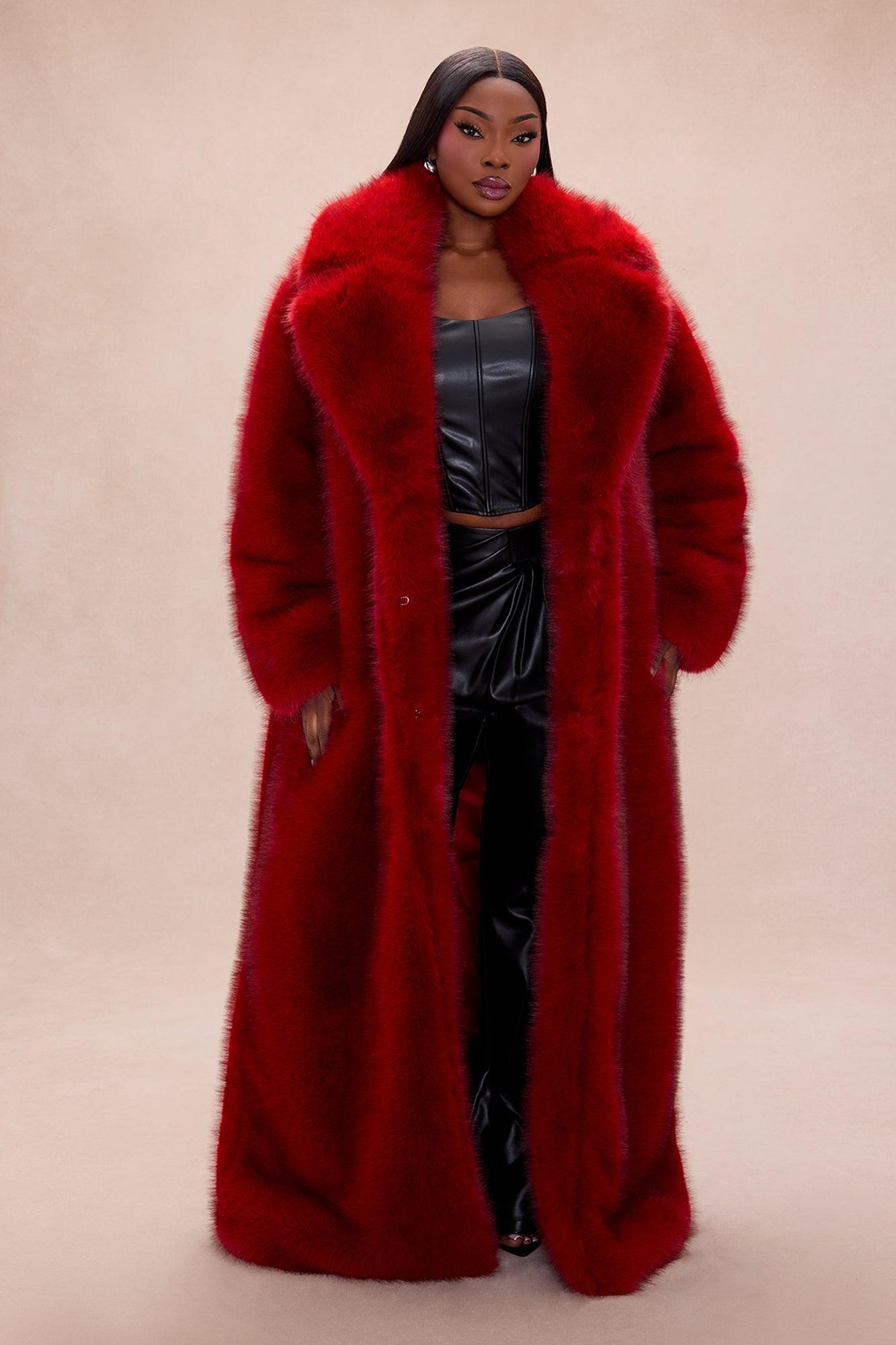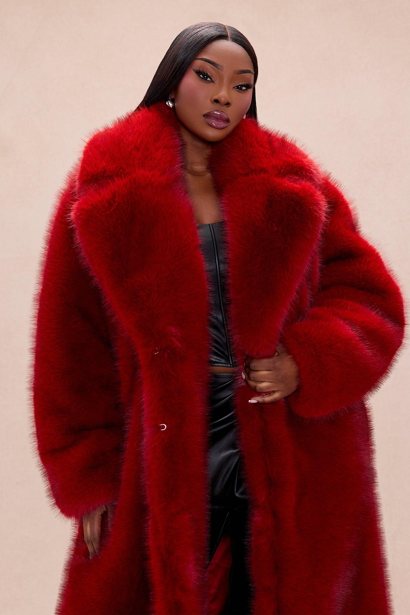Rebel Hearts Faux Fur Coat - Red Female