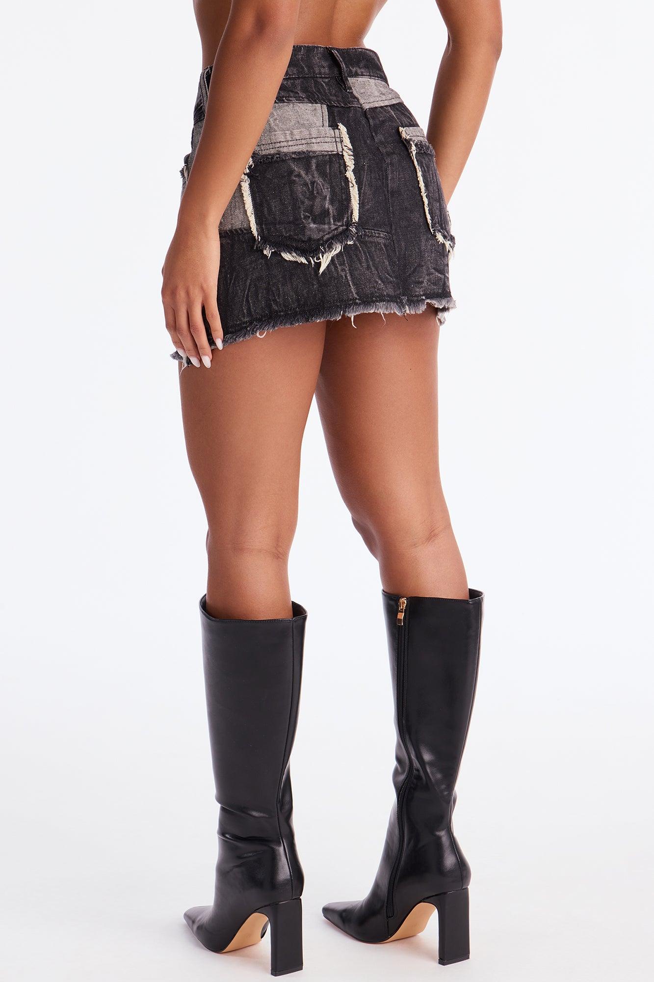 Available In Black Wash And Dark Wash. High Rise Button & Zip Closure Denim Patchwork Detail Mineral Wash Effect Fray Edge Detail Non Stretch Disclaimer: Due To The Specialized Wash, Each Garment Is Unique. 80% Cotton 20% Polyester Imported California Proposition 65WARNING: Cancer and Reproductive Harm - www.P65Warnings.ca.gov.