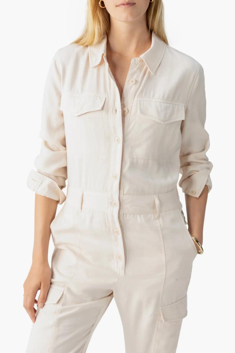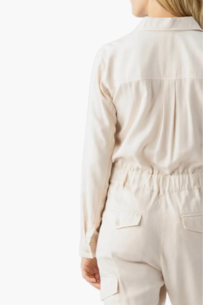 Tap into workwear-inspired style with this clean-cut lyocell-twill jumpsuit shaped by a back elastic waist for a comfy fit.