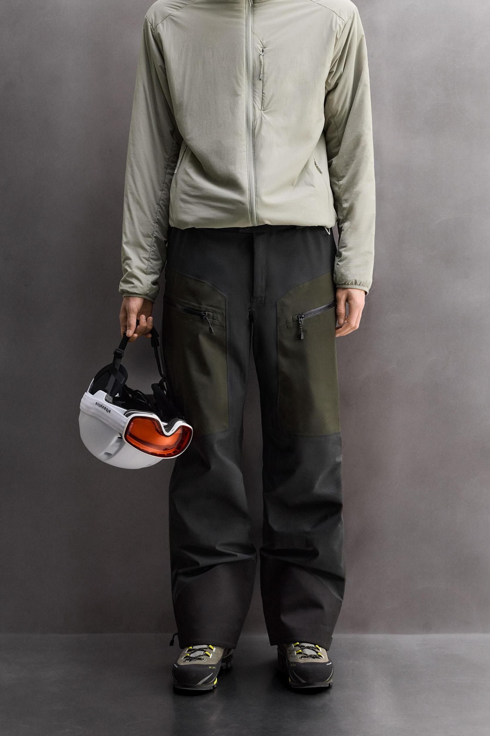 Sports pants made of three-layer technical fabric with a protective membrane. Fabric resistant to water penetration ≥15K. The garment has all heat-sealed seams and zippers to improve waterproofing.