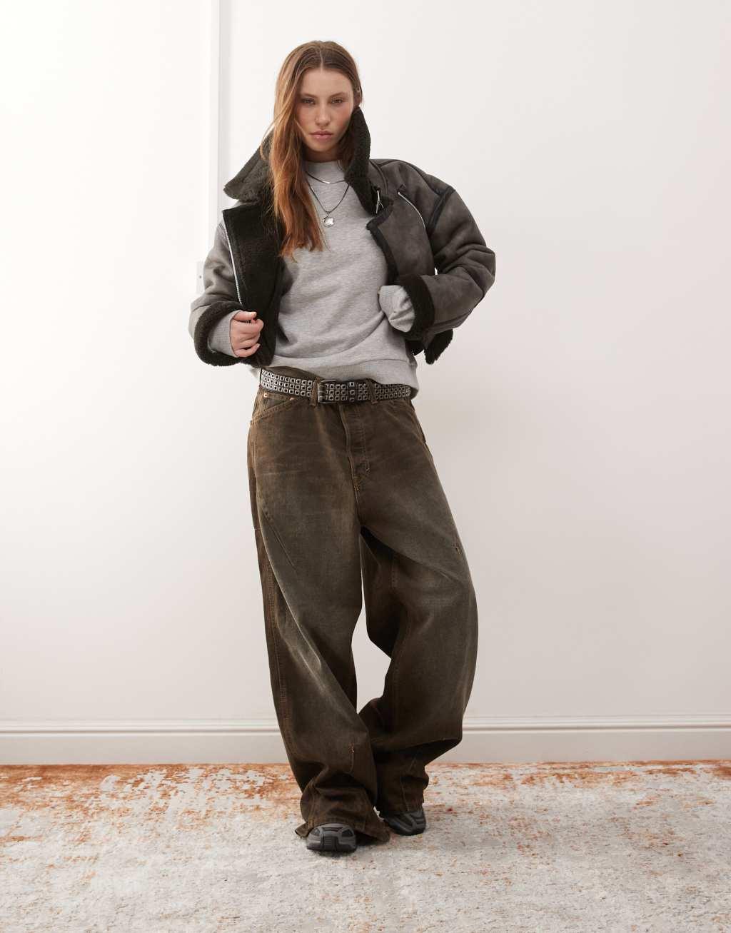 Reclaimed Vintage funnel neck balloon sleeve sweater in gray heather