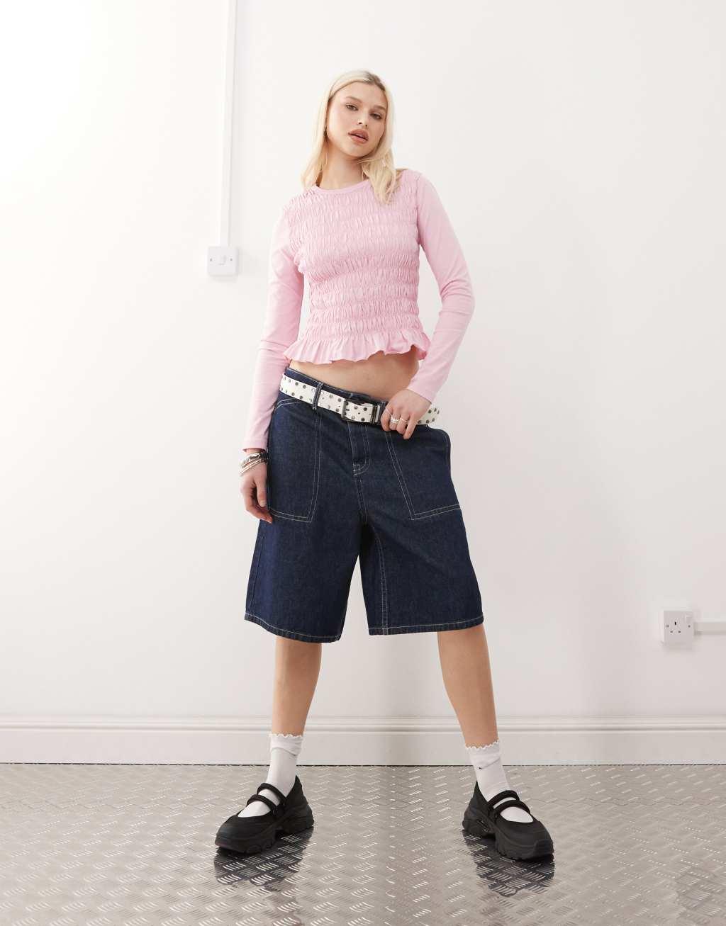 Reclaimed Vintage shirred long sleeve top in pink