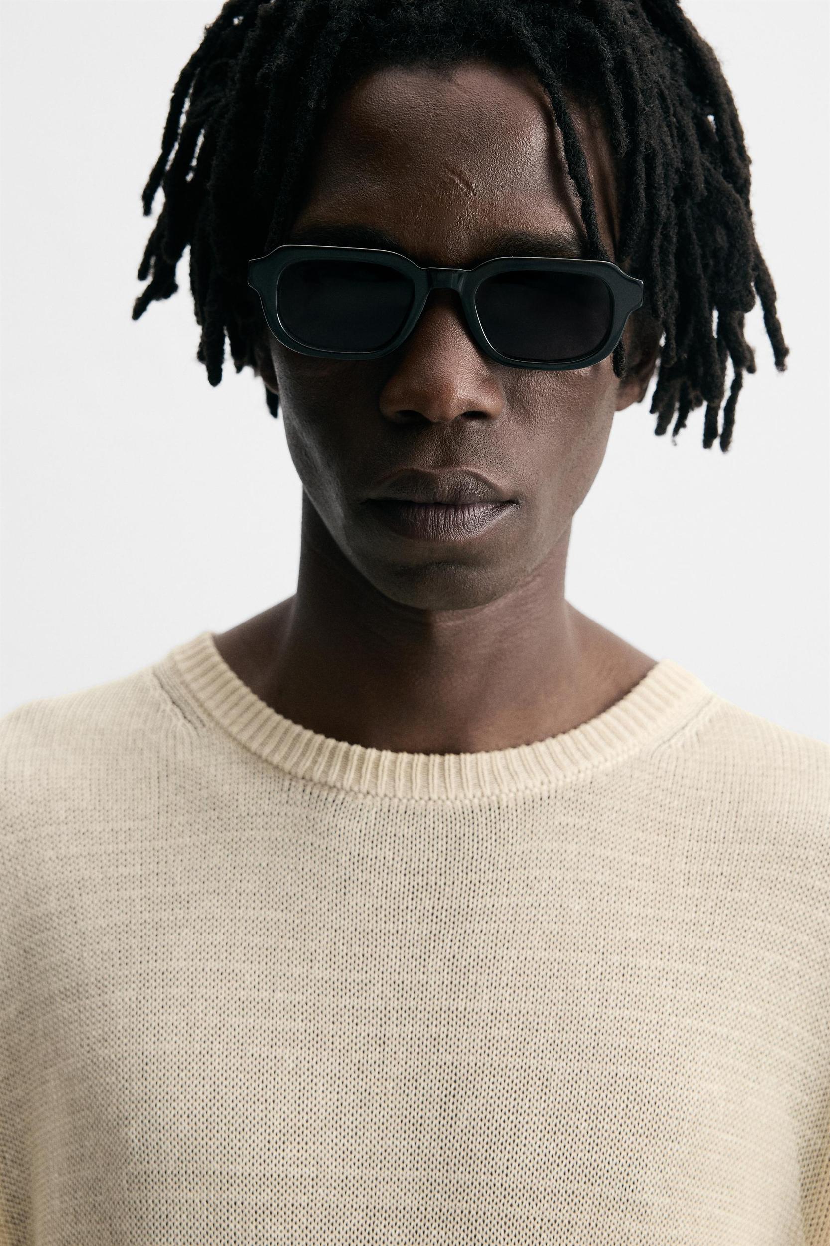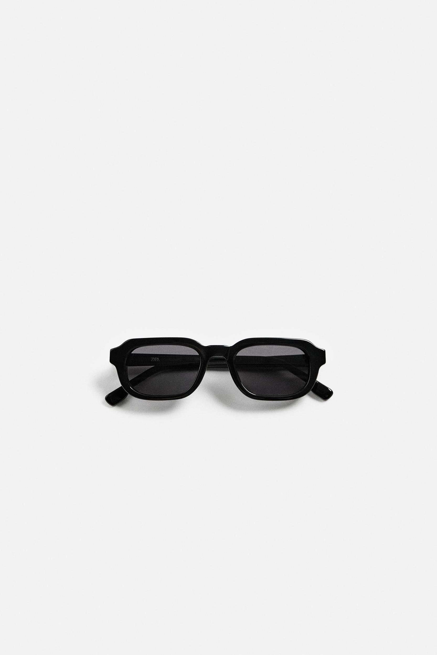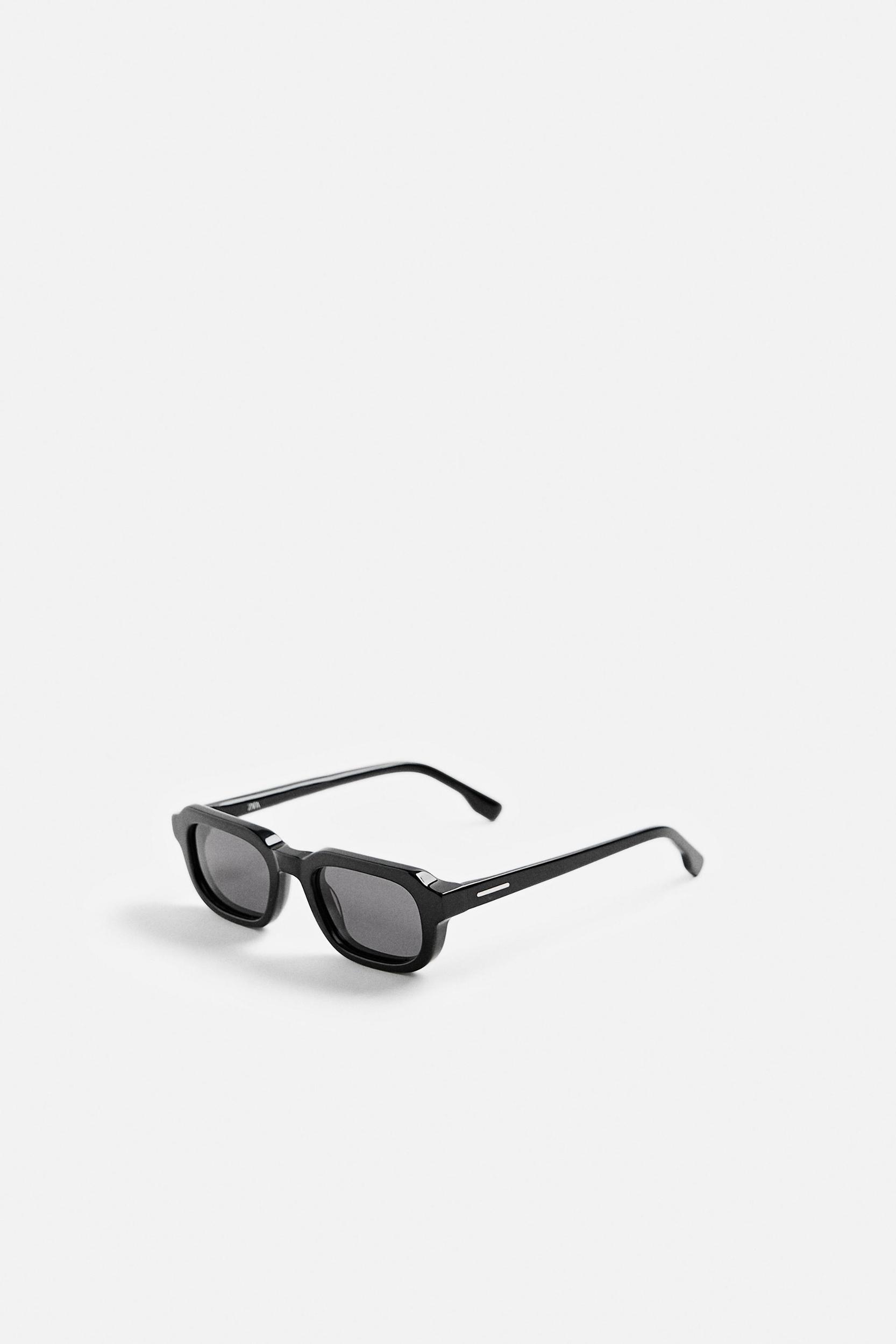 Rectangular sunglasses with narrow acetate frames. Polarized lenses. Case included. 400 UV/UVA protection. Category 3.