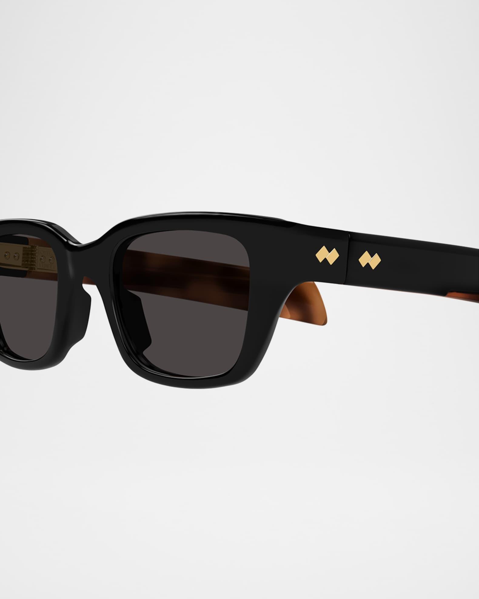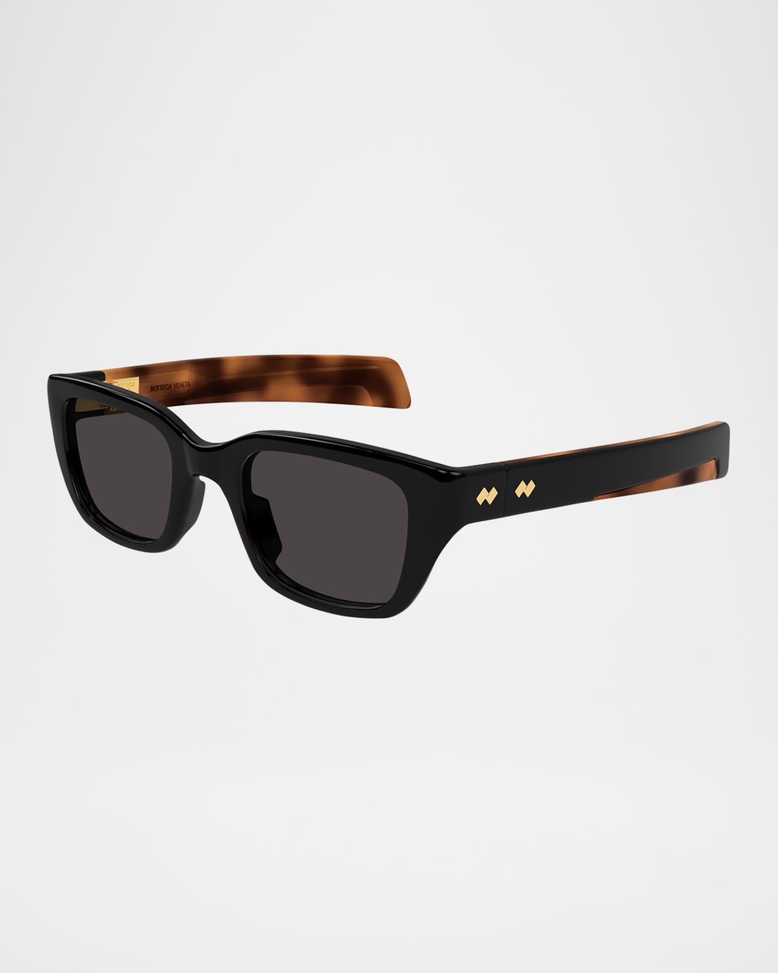 Bottega Veneta "BV1393S" rectangular unisex sunglasses in recycled acetate Eye/bridge/temple (in mm): 50-22-130 Solid lenses Saddle nose bridge Gold-tone logo hardware on temples Wide, tapered arms 100% UVA/UVB protection Made in Japan Proposition 65 warning for California residents