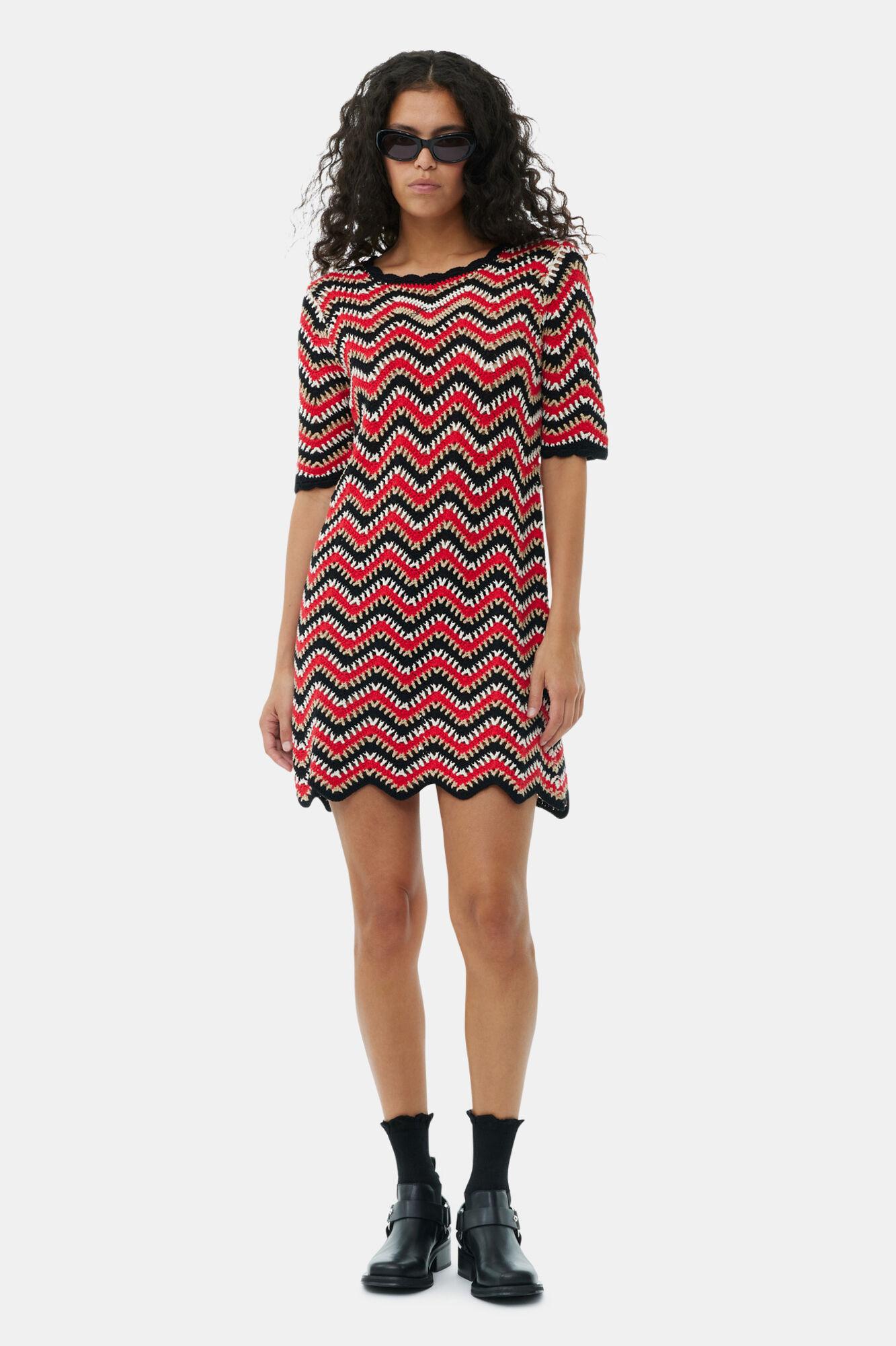 Red Cotton Crochet Mini Dress