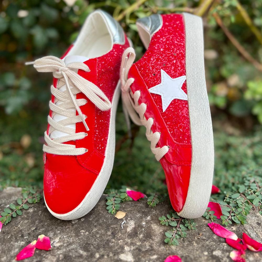 Red Glazed Star Sneakers | Gussied Up Online BoutiqueDiscover the perfect blend of comfort and style with our Red Glazed Star Sneakers! These classic sneake...