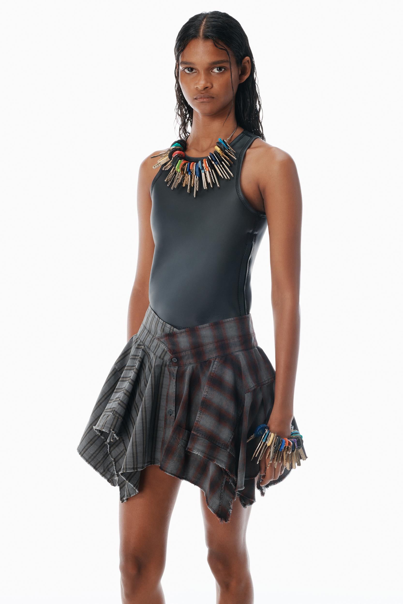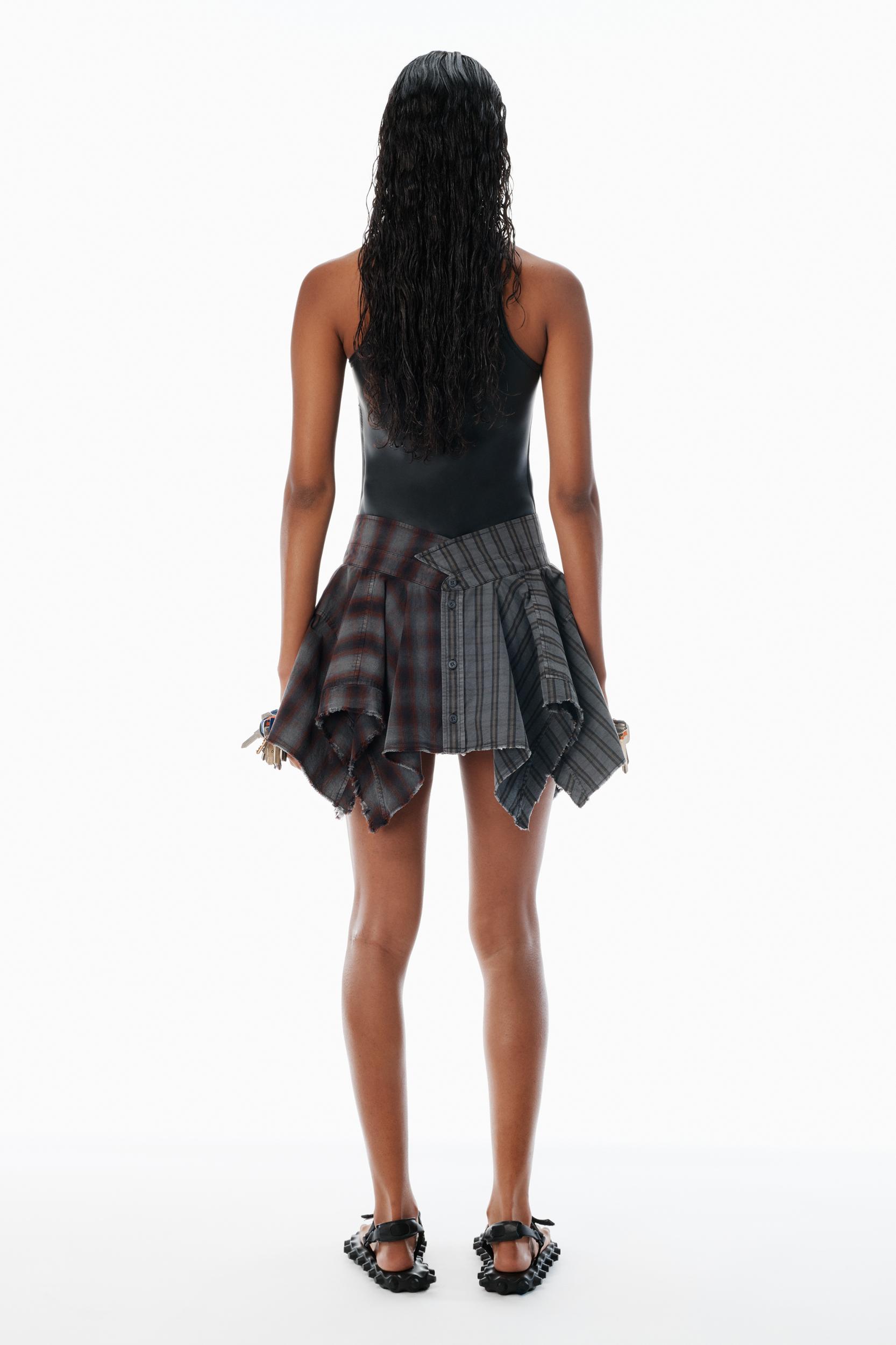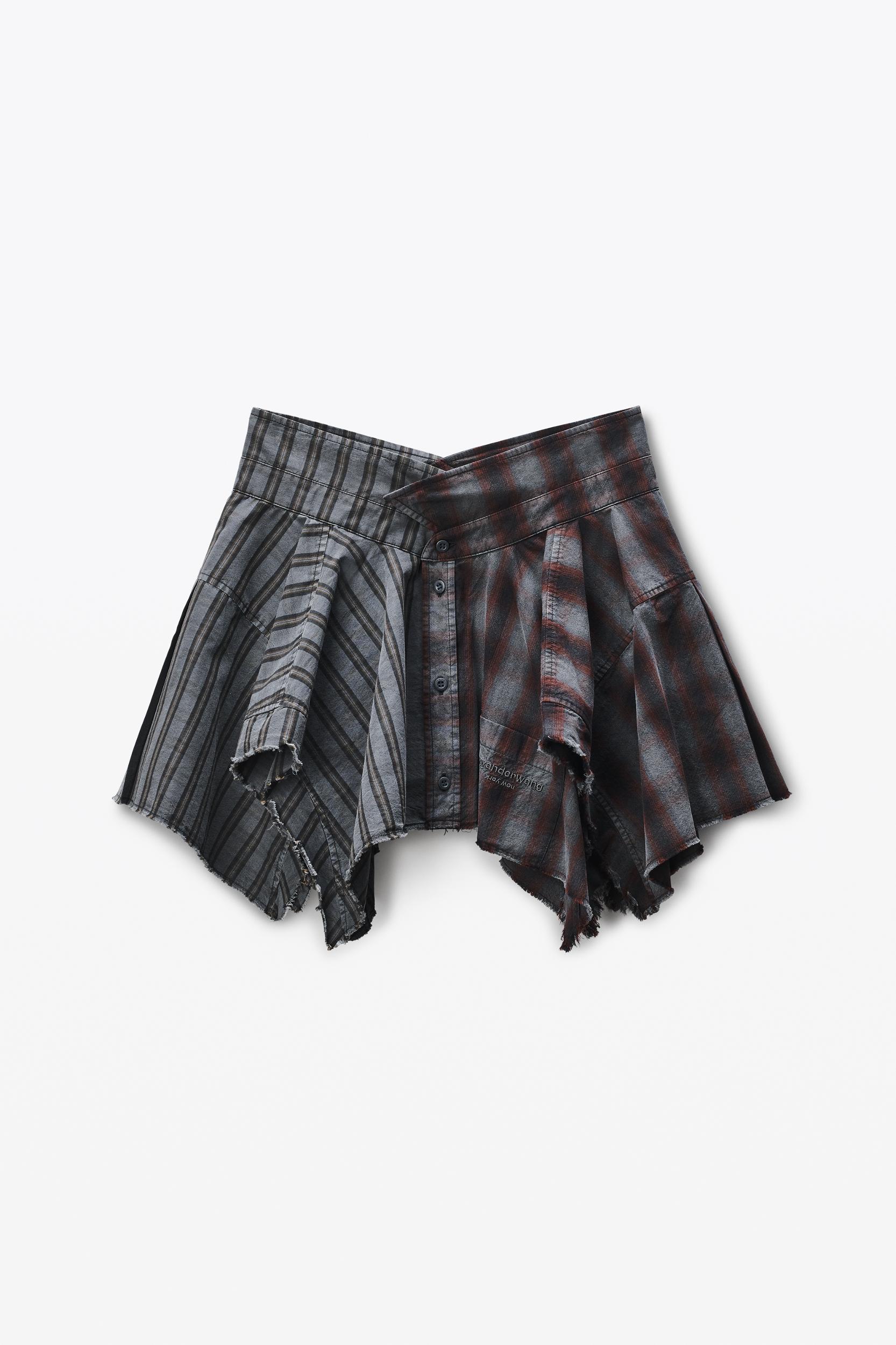 Defined by a high-low raw-finished hem, this smog red and grey mid-rise miniskirt features turned-up collars that create a 'V' shape at the front.