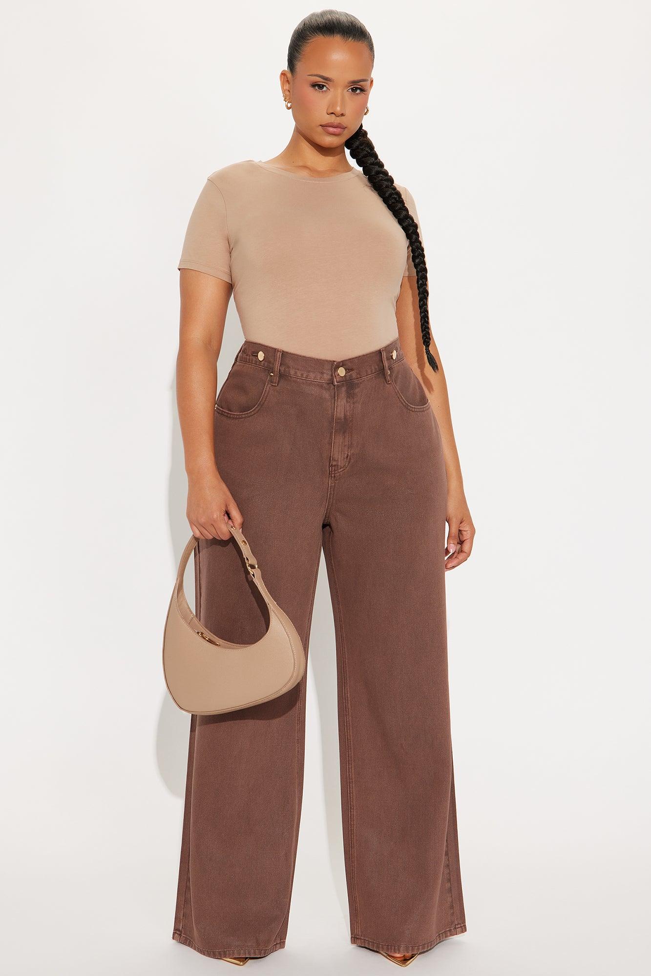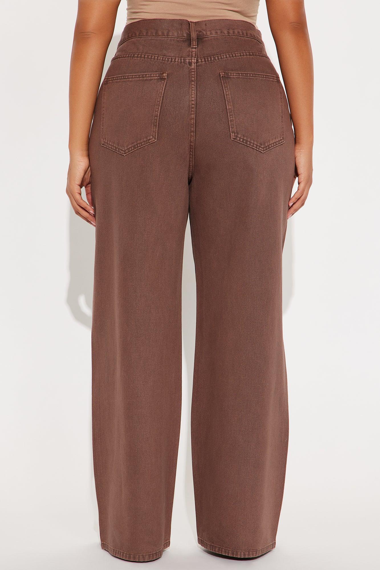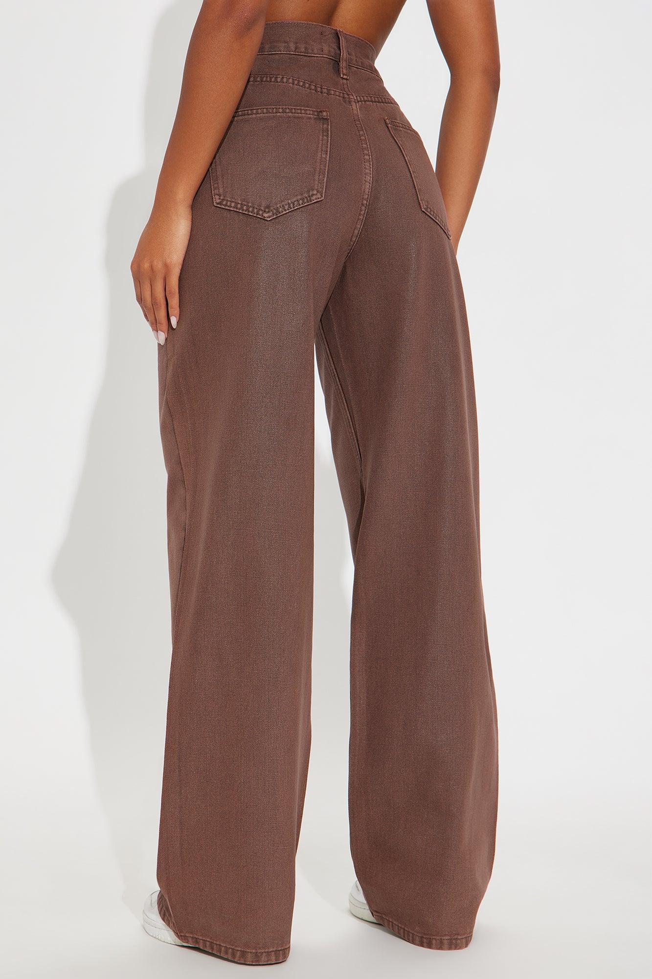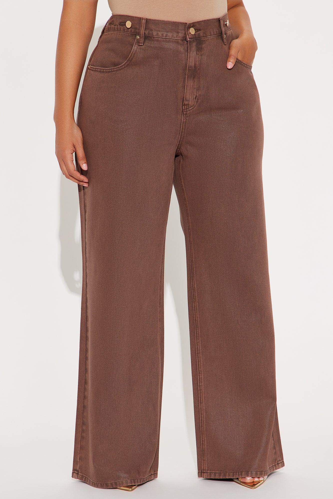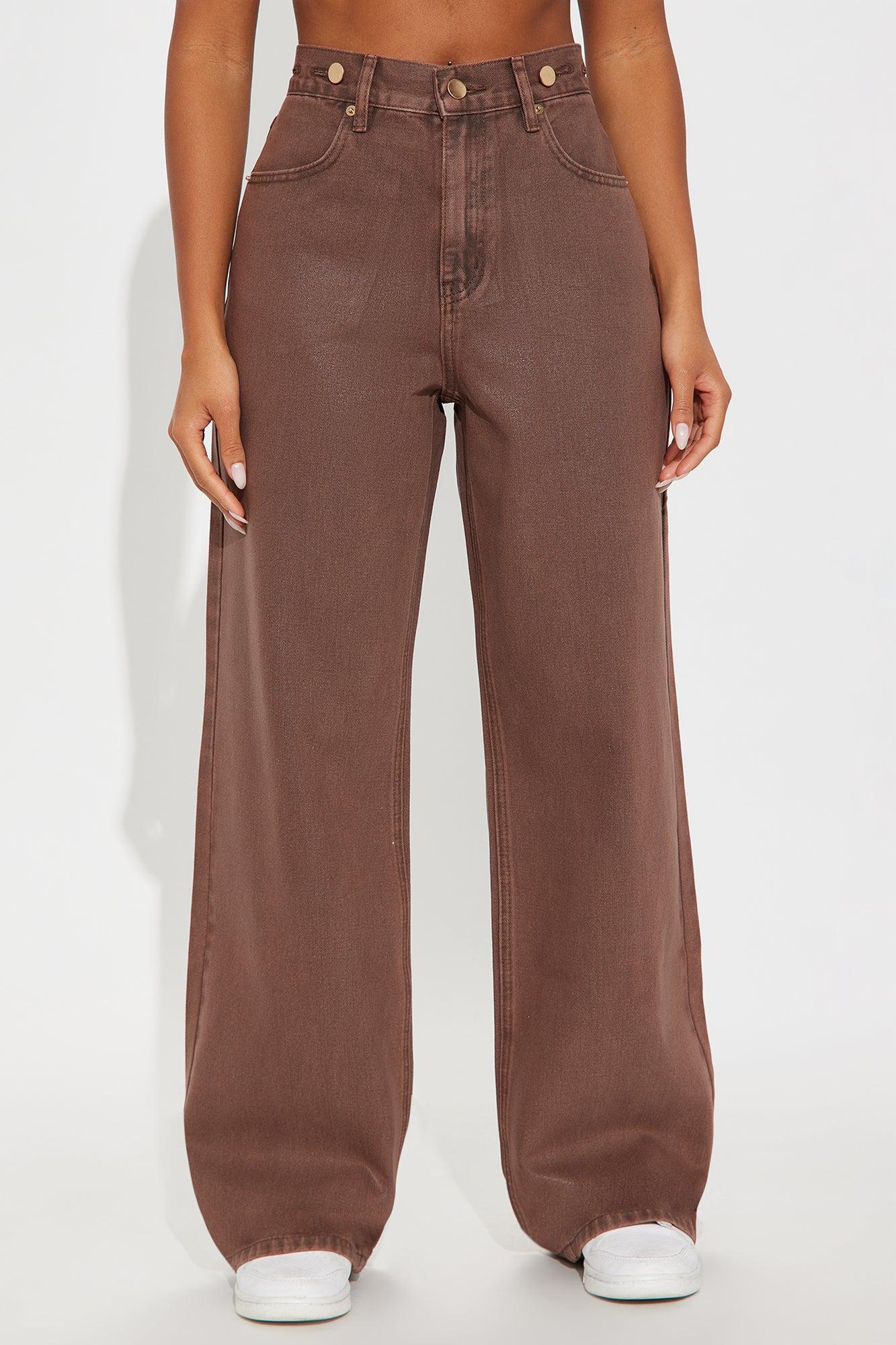 Available In Brown And Red. Wide Leg Jean 5 Pocket Adjustable Waistband Detail Coated 11.5" Rise 33" Inseam Non Stretch Disclaimer Due To The Specialized Wash Process, Each Garment Is Unique. 100% Cotton Imported California Proposition 65WARNING: Cancer and Reproductive Harm - www.P65Warnings.ca.gov.