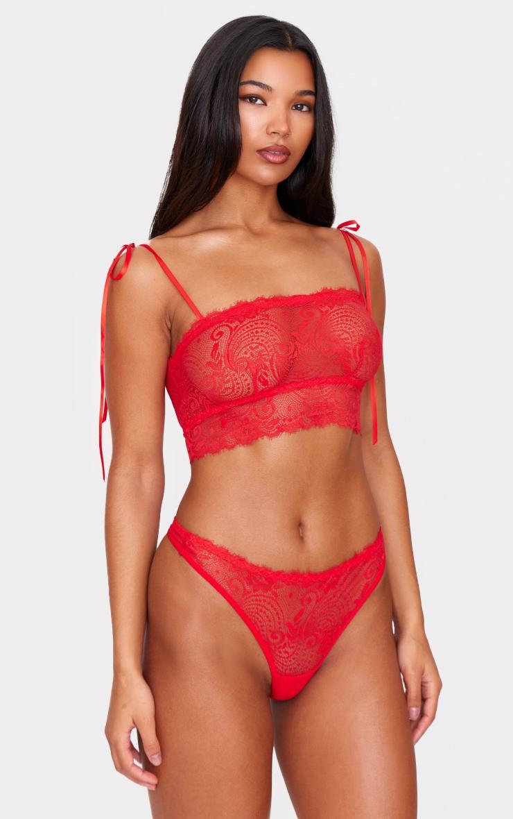 Take your lingerie look to new heights with these red lace panties. Made from a red lace material with delicate detailing, how can you resist? Pair these red panties with the matching bralette and simple gold accessories for a look they won't be able to take their eyes off. Length approx 28cm/11inch (Based on a sample size S) Model wears size SModel Height - 5ft 6inchp]:!mb-0inch>Category: Lingerie & NightwearProduct type: PantiesColor: RedMaterial: Mesh