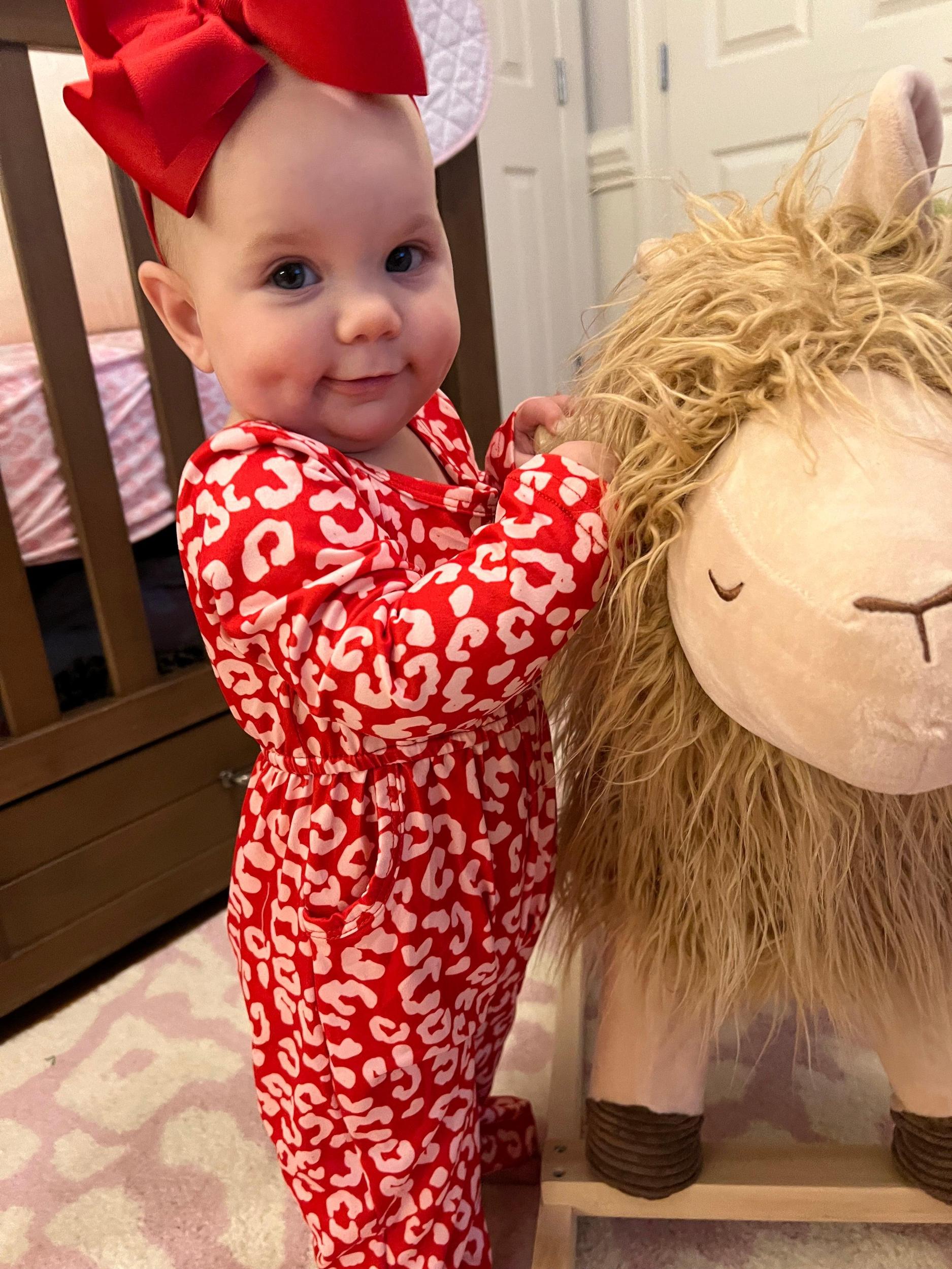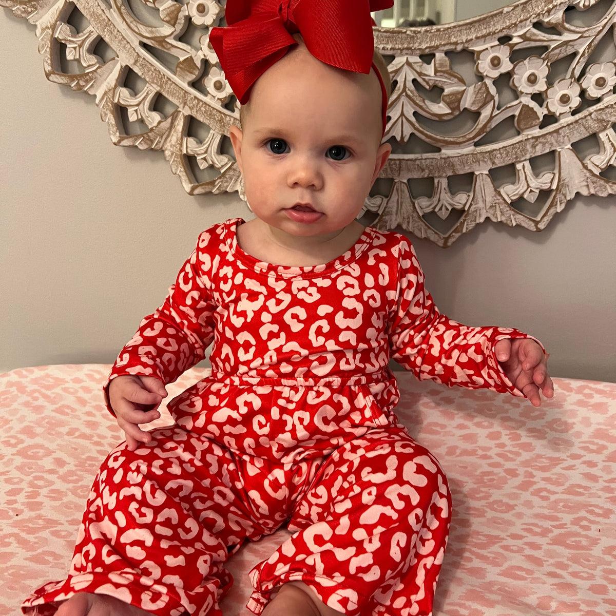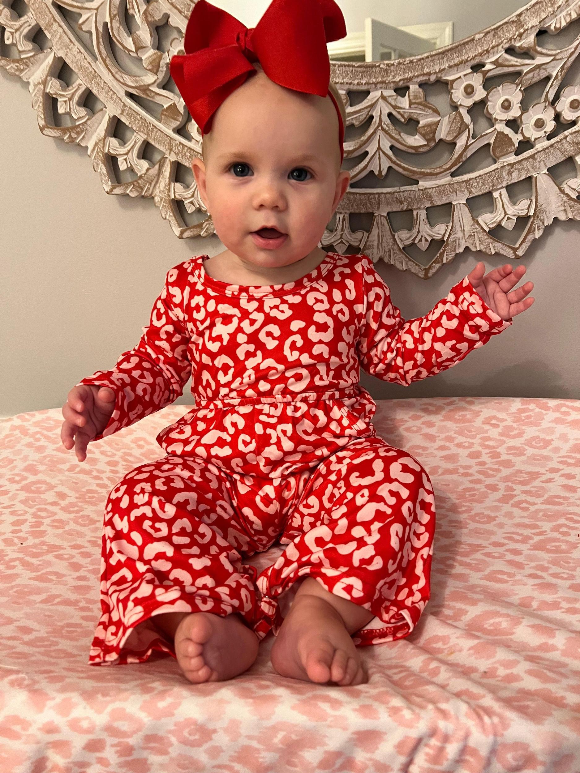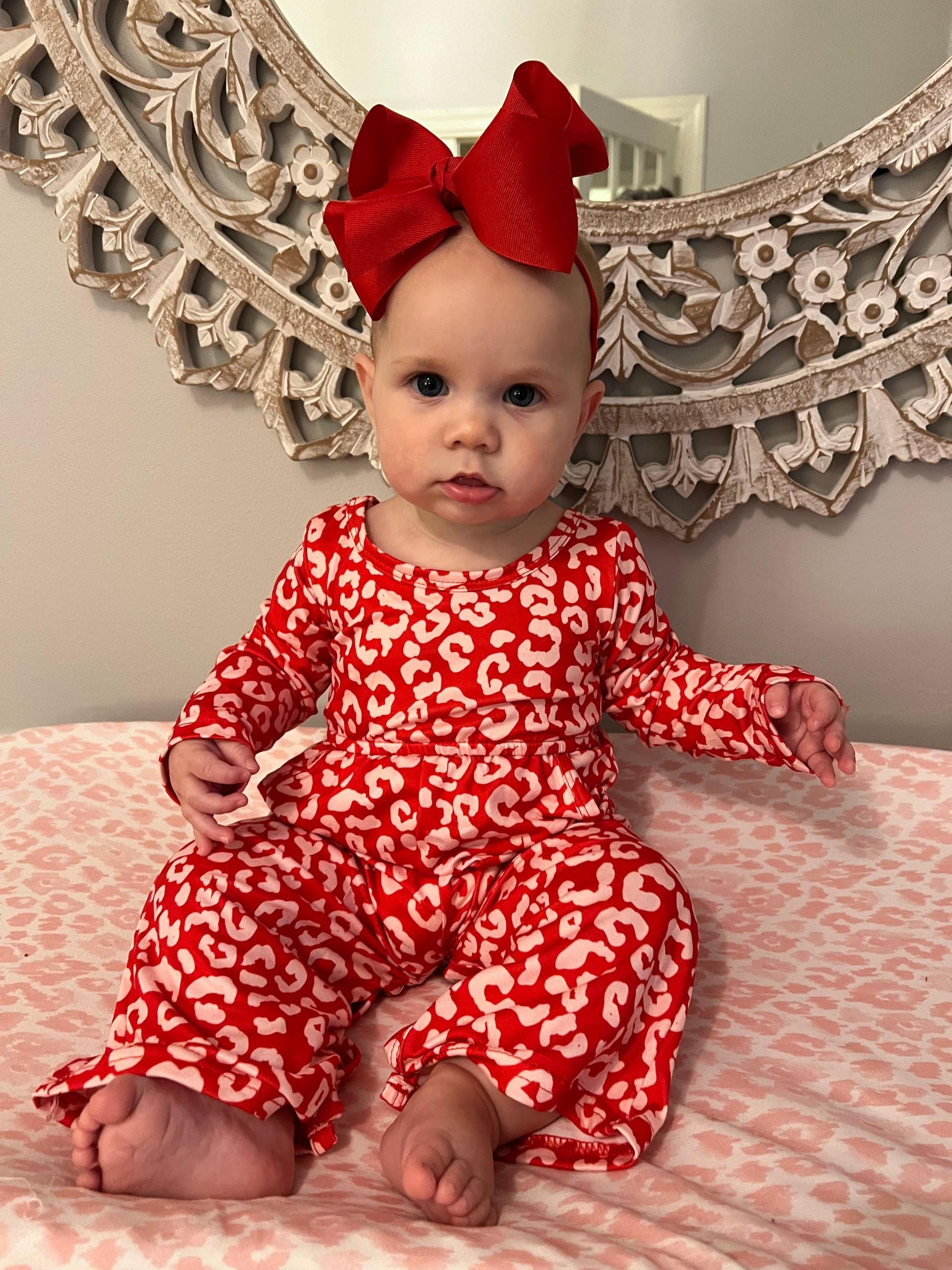Red Leopard Long Sleeve Pocket Jumpsuit