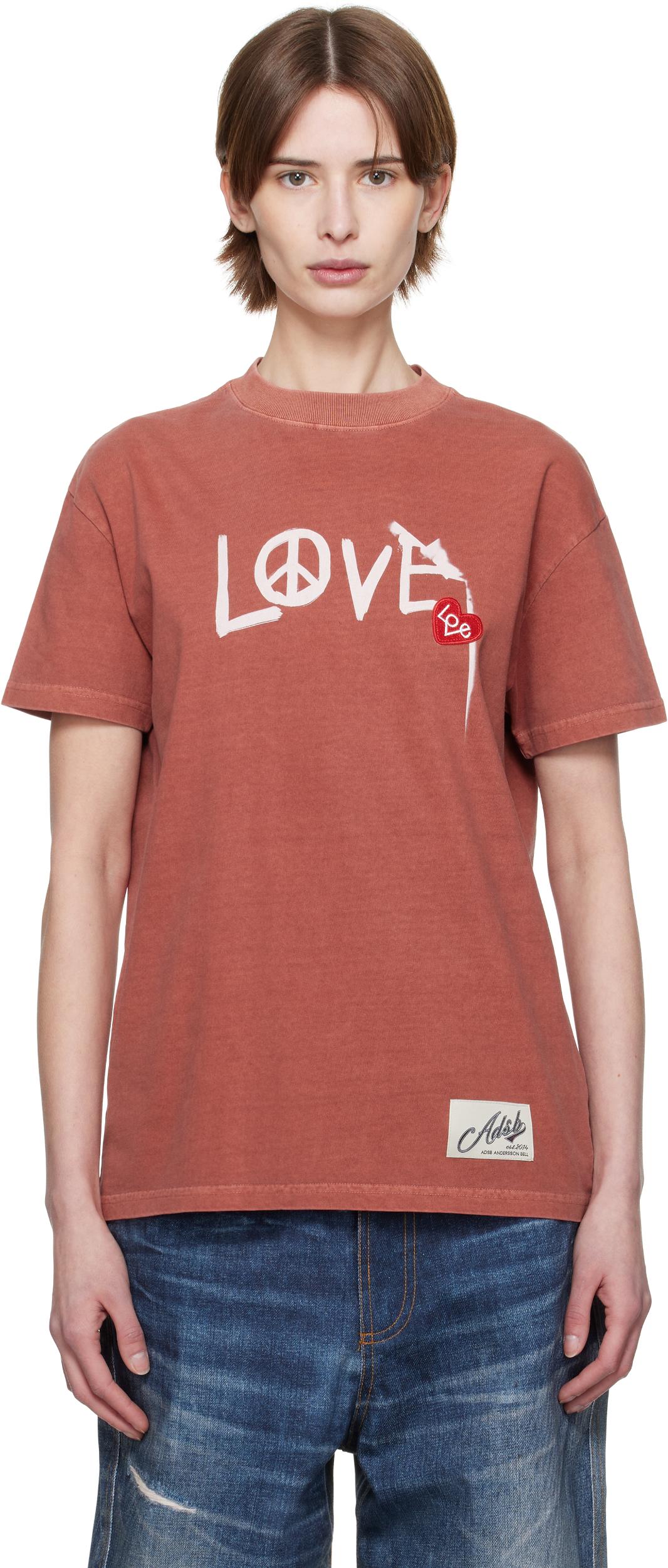 Cotton jersey T-shirt. · Rib-knit crewneck · Text printed at chest · Embroidered graphic patch at front · Logo patch at hem Supplier color: Red