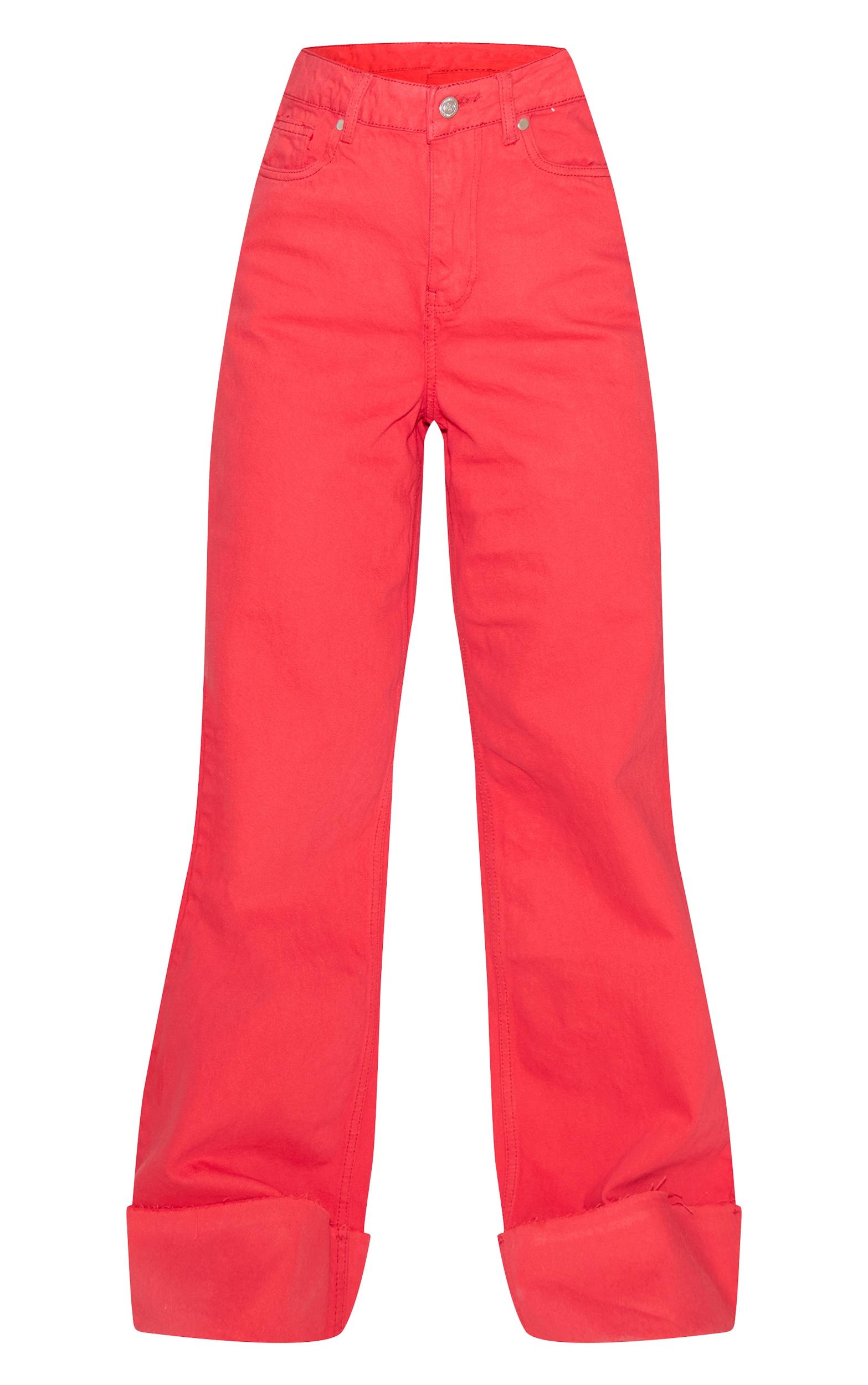 Make a statement in these red mid rise wide leg jeans. Tailored from vibrant material, these jeans feature a classic mid rise, wide leg fit. Perfect for elevating your off-duty looks, style these with a scoop neck cami, chunky sneakers and an oversized blazer.Length approx 77.5cm/30.5inch (Based on sample size US 4)Model wears size UK 8/ EU 36/ AUS 8/ US 4Model Height - 5ft 7inchp]:!mb-4inch>Brand: PrettyLittleThingCategory: DenimProduct type: Wide Leg JeansColor: RedMaterial: Rigid DenimOccasion: Day