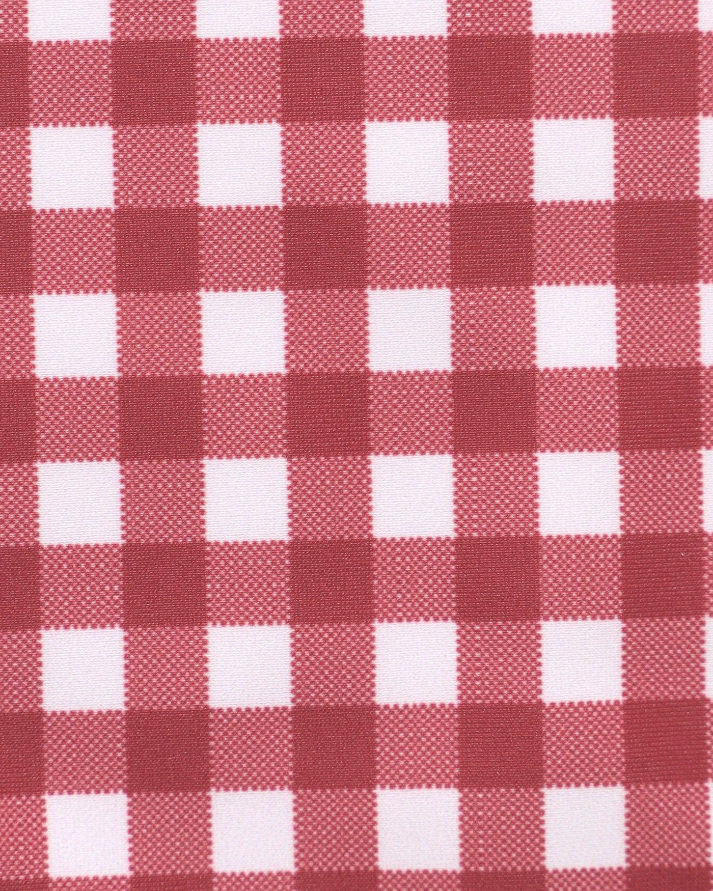 - Back Neckline: Strappy - Fabric Stretch: High Stretch - Waist: High Waisted - Closure Type: Elastic Waist - Pattern Type: Plaid - Embellishment: Tie, Knot, Elastic Waist, Floral - Neckline: Square Neck - Fabric: Polyester 82.0%, Spandex 18.0% - Lining: Polyester 90.0%, Spandex 10.0% - Leg Opening: Mid Cut Leg - Padding: Removable Soft Cups - Bottom Coverage: Moderate Bottom Coverage - Bra Coverage: 3/4 Cup
