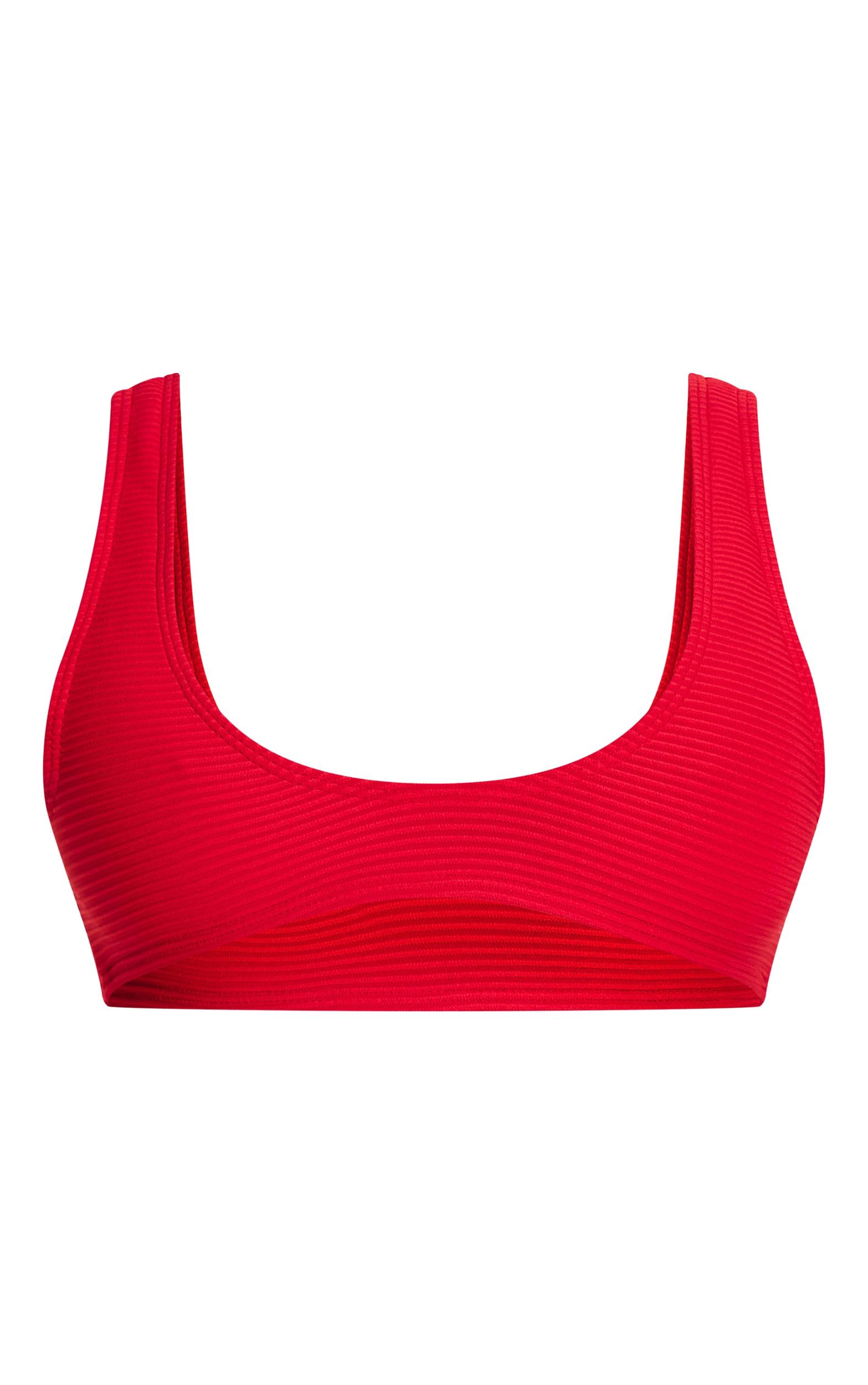 Anchor your swimwear edit in bold color. The red ribbed plunge bikini top offers a clean scoop neckline and classic strap design, creating an essential silhouette for warmer days. Simply style with the matching red ribbed bikini bottoms for a confident look by the water.Length approx 29cm/11.5inch (Based on sample size US 4)Model wears size UK 8/ EU 36/ AUS 8/ US 4Model Height - 5ft 8inchp]:!mb-4inch>Brand: PrettyLittleThingCategory: SwimwearProduct type: Plunge Bikini TopColor: RedMaterial: SwimOccasion: Day
