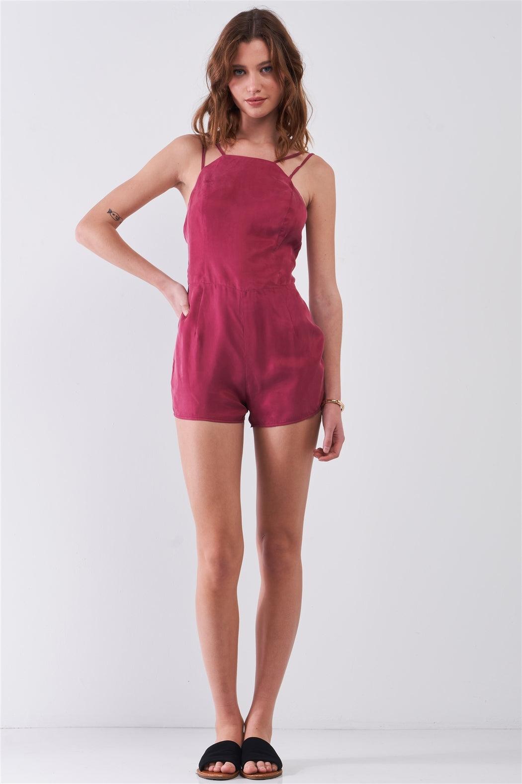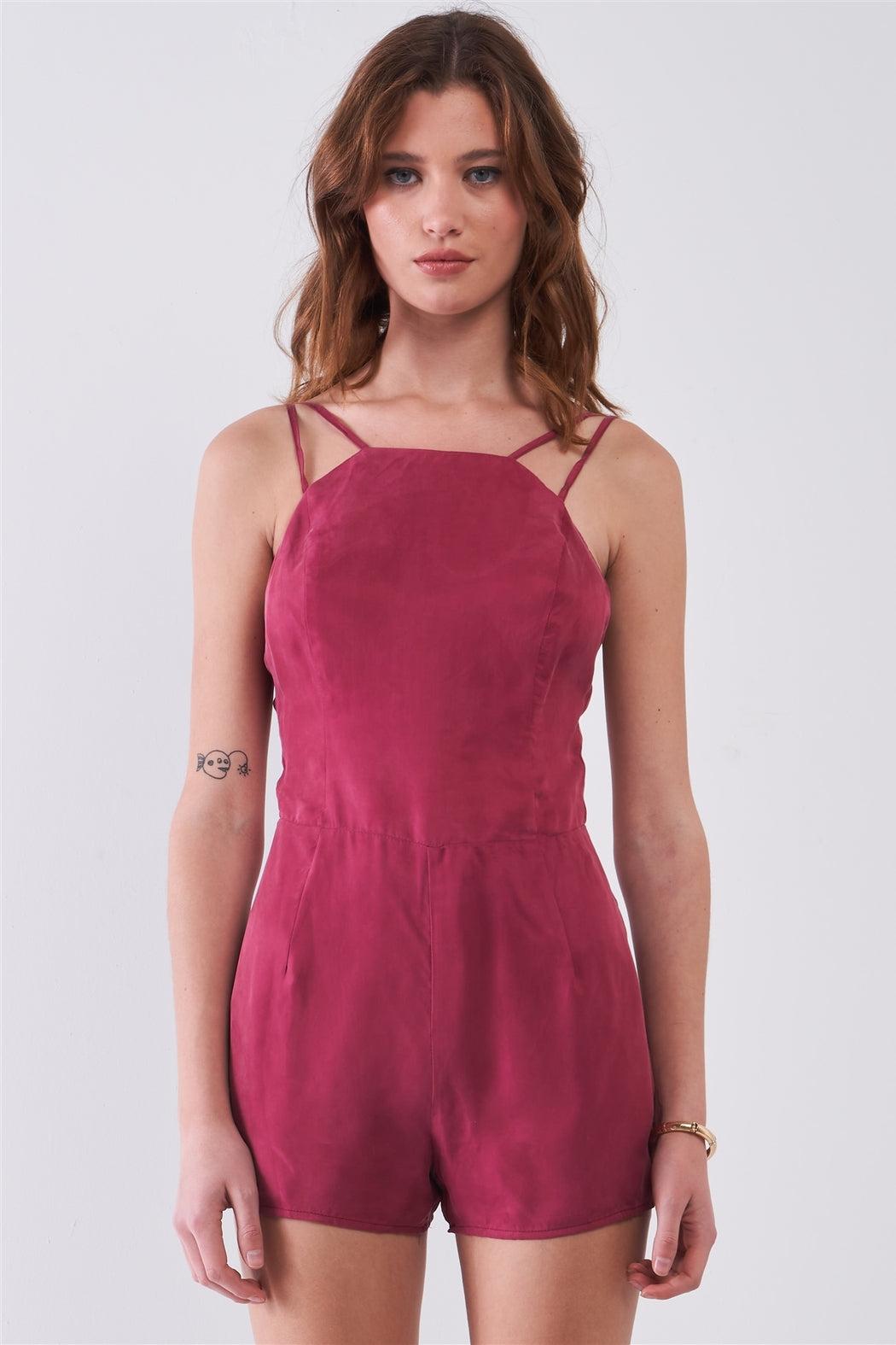 ?? Item features: Red sangria, solid color, soft shine finish, sleeveless, adjustable double shoulder straps, bandeau neckline, open back detail, back zipper and inner hook&eye closures, mini length, regular fit, unlined, non-sheer, non-stretch, cute, flirty, girly, casual, spring/summer collection