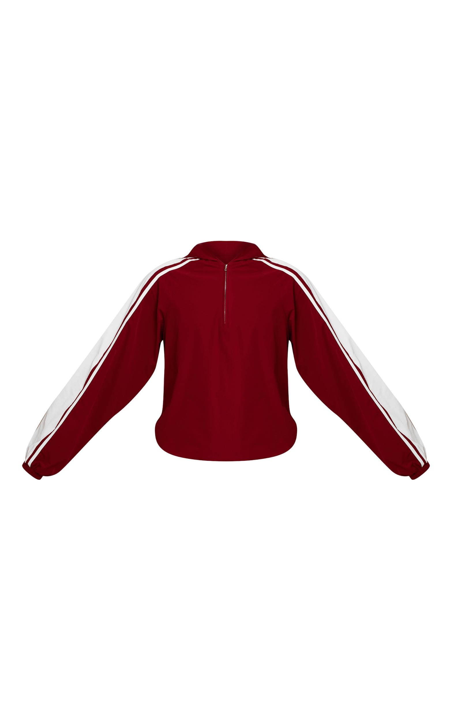 The red shell contrast stripe hooded track jacket adds a pop of color to your athleisure rotation. Lightweight yet functional, it’s perfect for layering or wearing on-the-go. Pair with the matching wide leg track Pants for a statement two piece set or style over leggings for a sporty casual vibe.Length approx 48.5cm/19inch (Based on sample size S)Model wears size SModel Height - 5ft 10inchp]:!mb-4inch>Brand: PrettyLittleThingCategory: AthleisureProduct type: WindbreakerColor: RedMaterial: ShellOccasion: Day