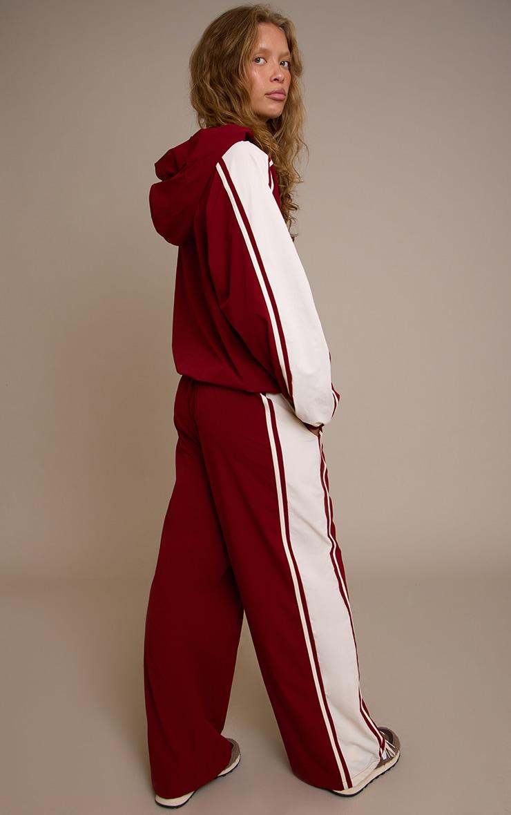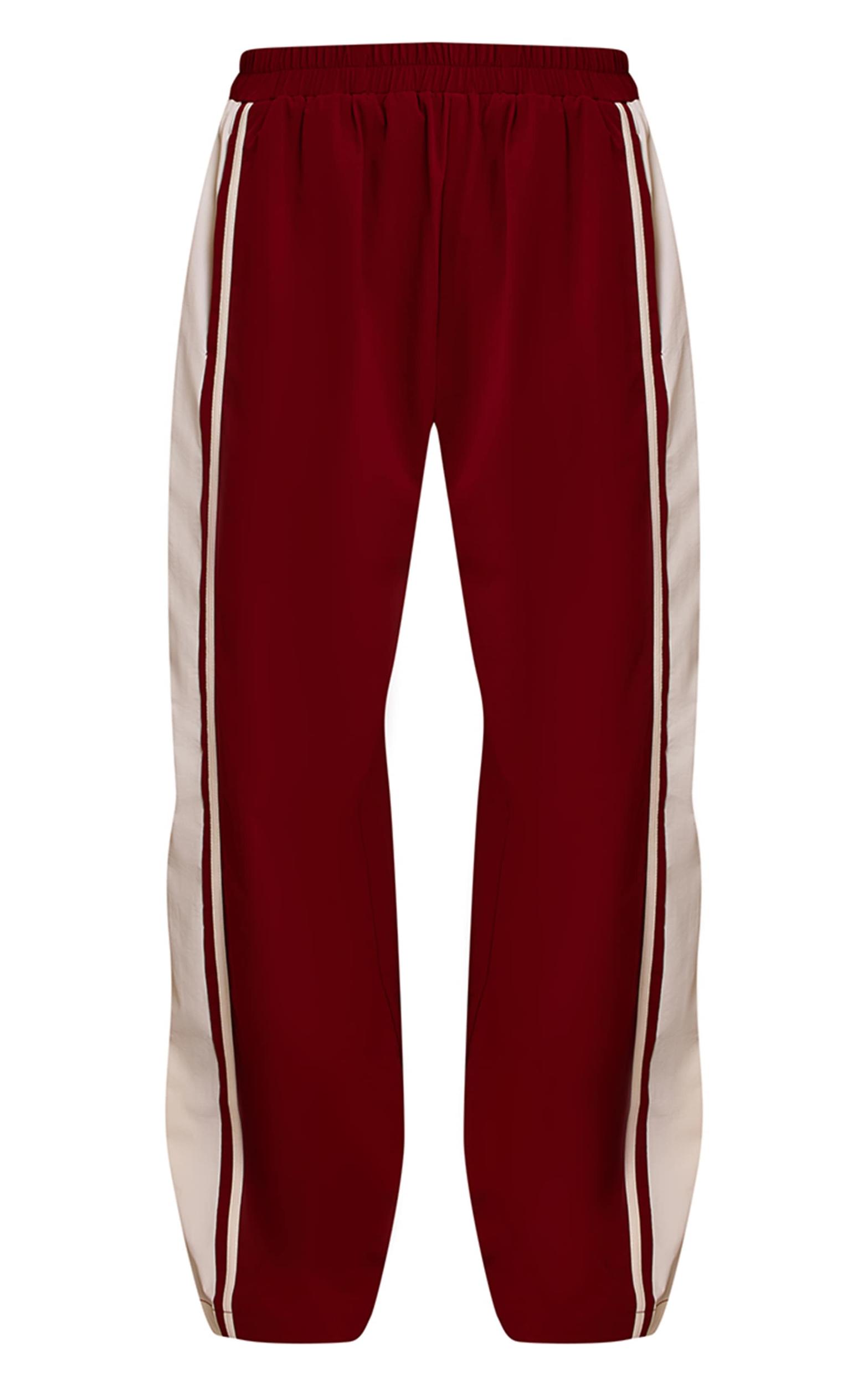 Elevate your loungewear with the red shell contrast stripe wide leg track pants. The loose fit and soft fabric make them ideal for comfort without compromising style. Pair with the matching hooded track jacket for a bold set or style with a simple tee for an easy weekend look.Length approx 76cm/30inch (Based on sample size S)Model wears size SModel Height - 5ft 10inchp]:!mb-4inch>Brand: PrettyLittleThingCategory: AthleisureProduct type: Wide Leg JoggersColor: RedMaterial: ShellOccasion: Day