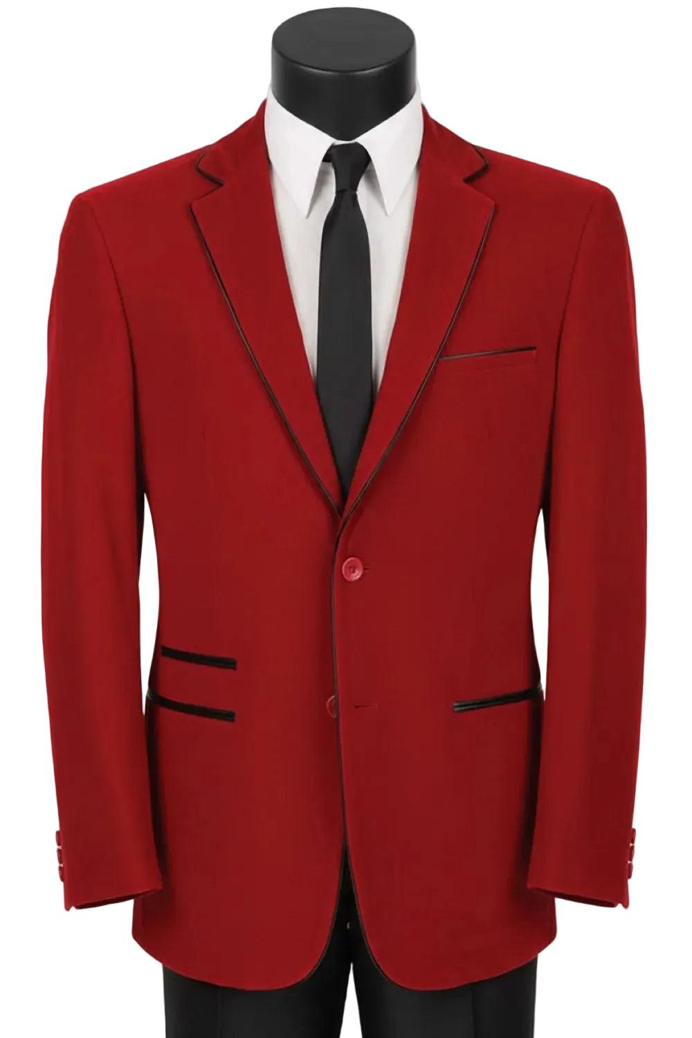 Red Slim Fit Velvet Sport Coat Single Breasted 2 buttons