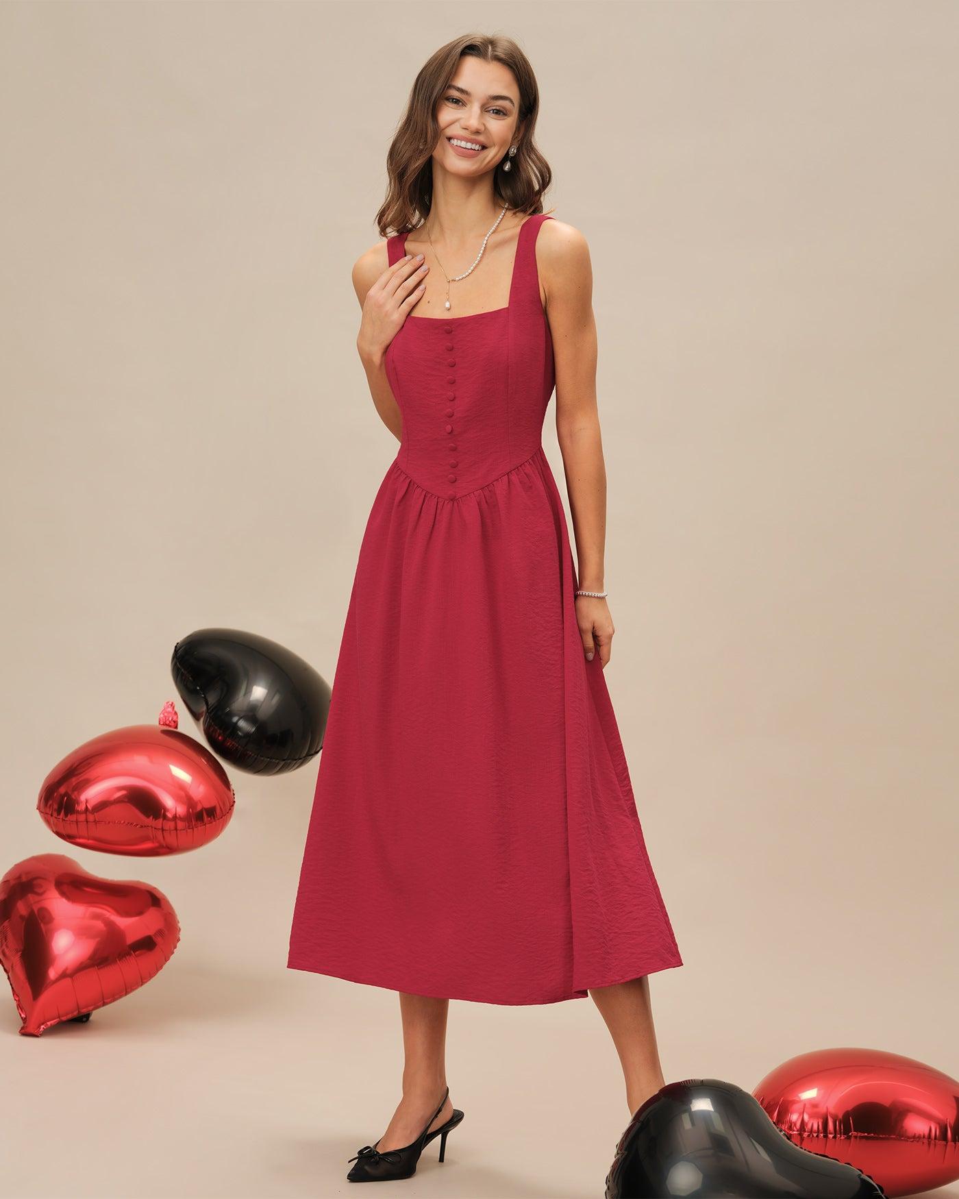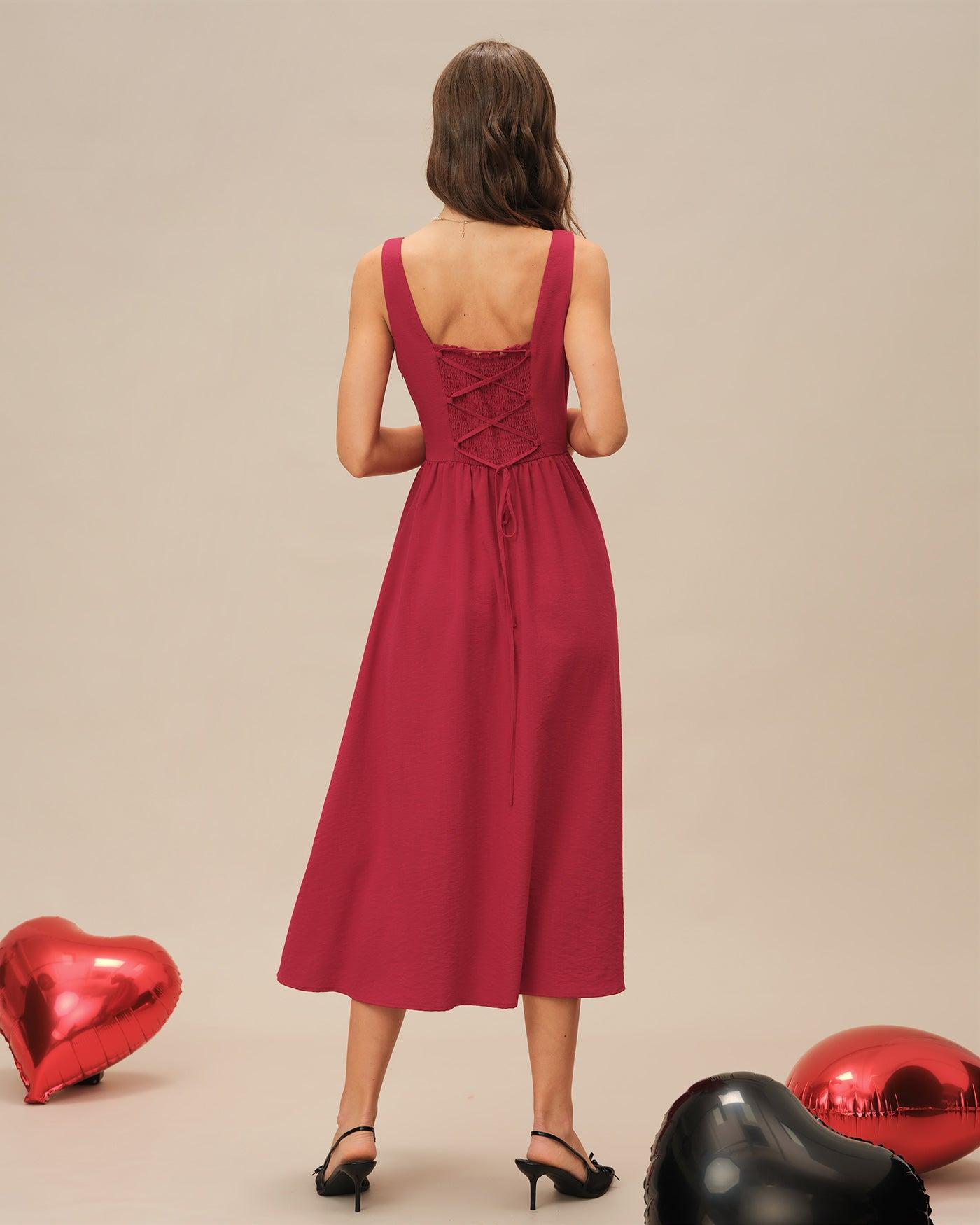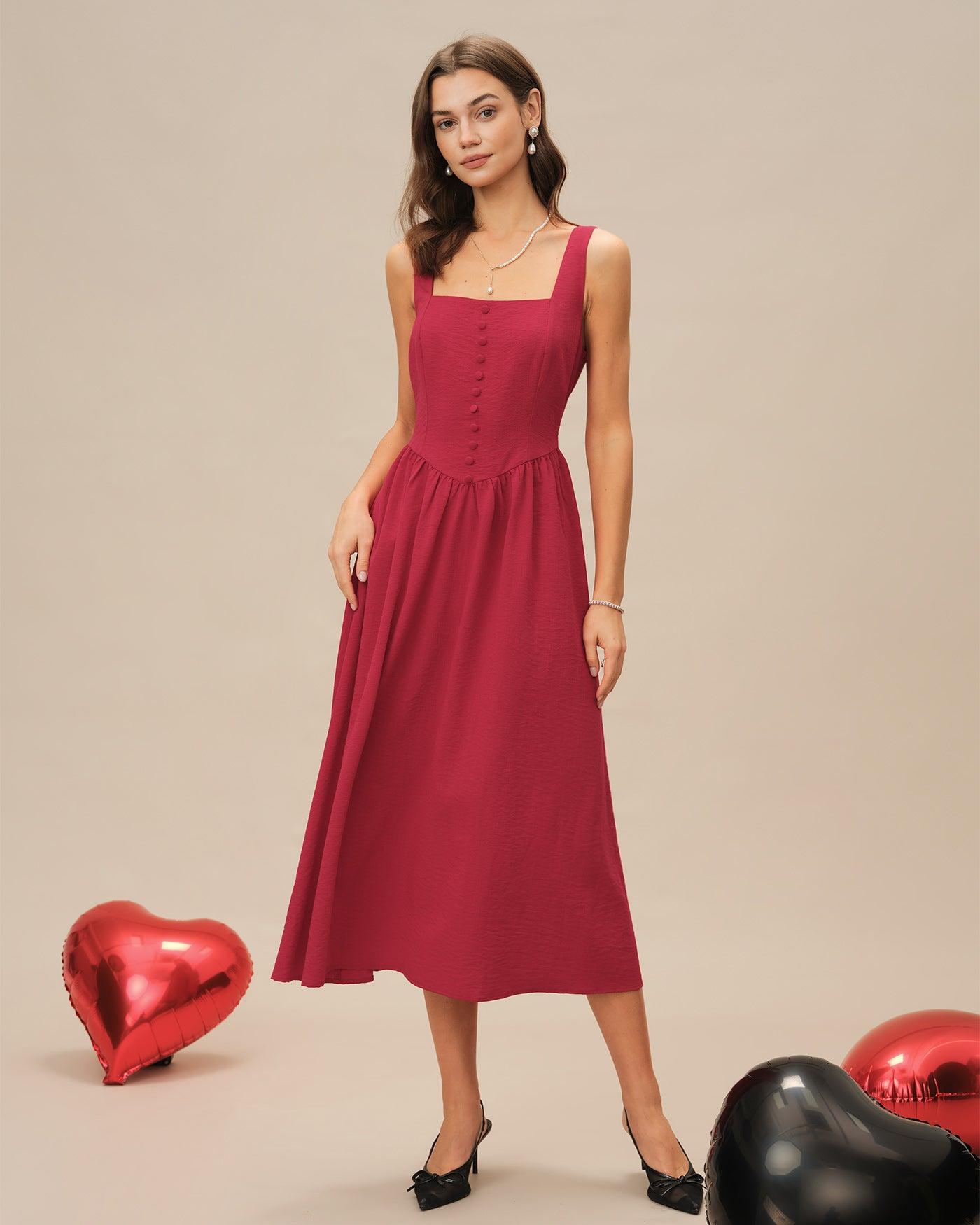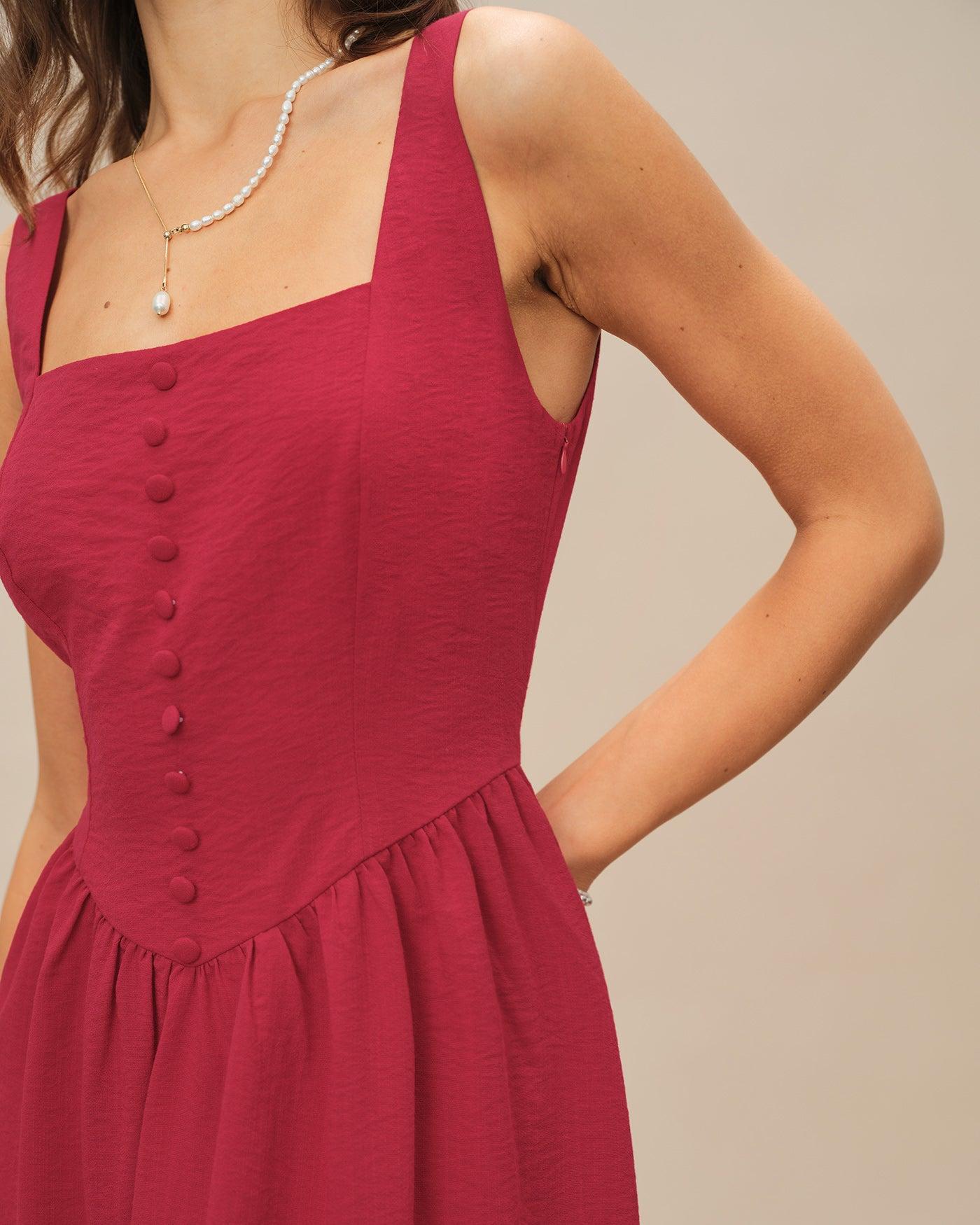 - Occasion: Daily - Style: Elegant - Season: Spring, Summer - Back Neckline: Strap - Fabric Stretch: No Stretch - Waist: Natural Waisted - Sleeve Length: Sleeveless - Sleeve Type: Sleeveless - Pattern Type: Solid - Embellishment: Button, Ruched, Shirred, Tie - Neckline: Square Neck - Dress Type: Sheath dress - Silhouette: A-Line - Fabric: Viscose 49.0%, Nylon 17.0%, Polyester 34.0% - Lining: Polyester 100.0% - Material: Worsted woven