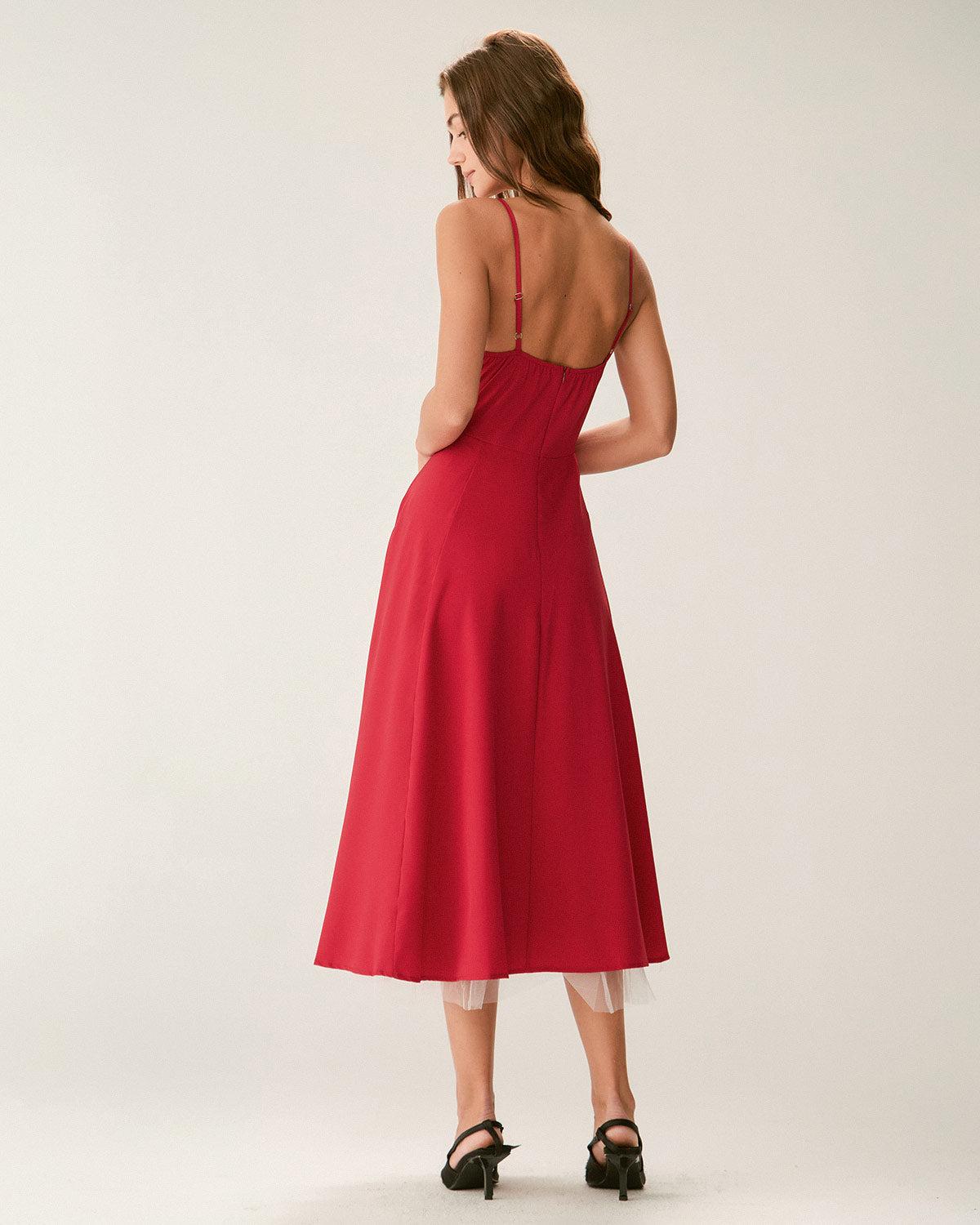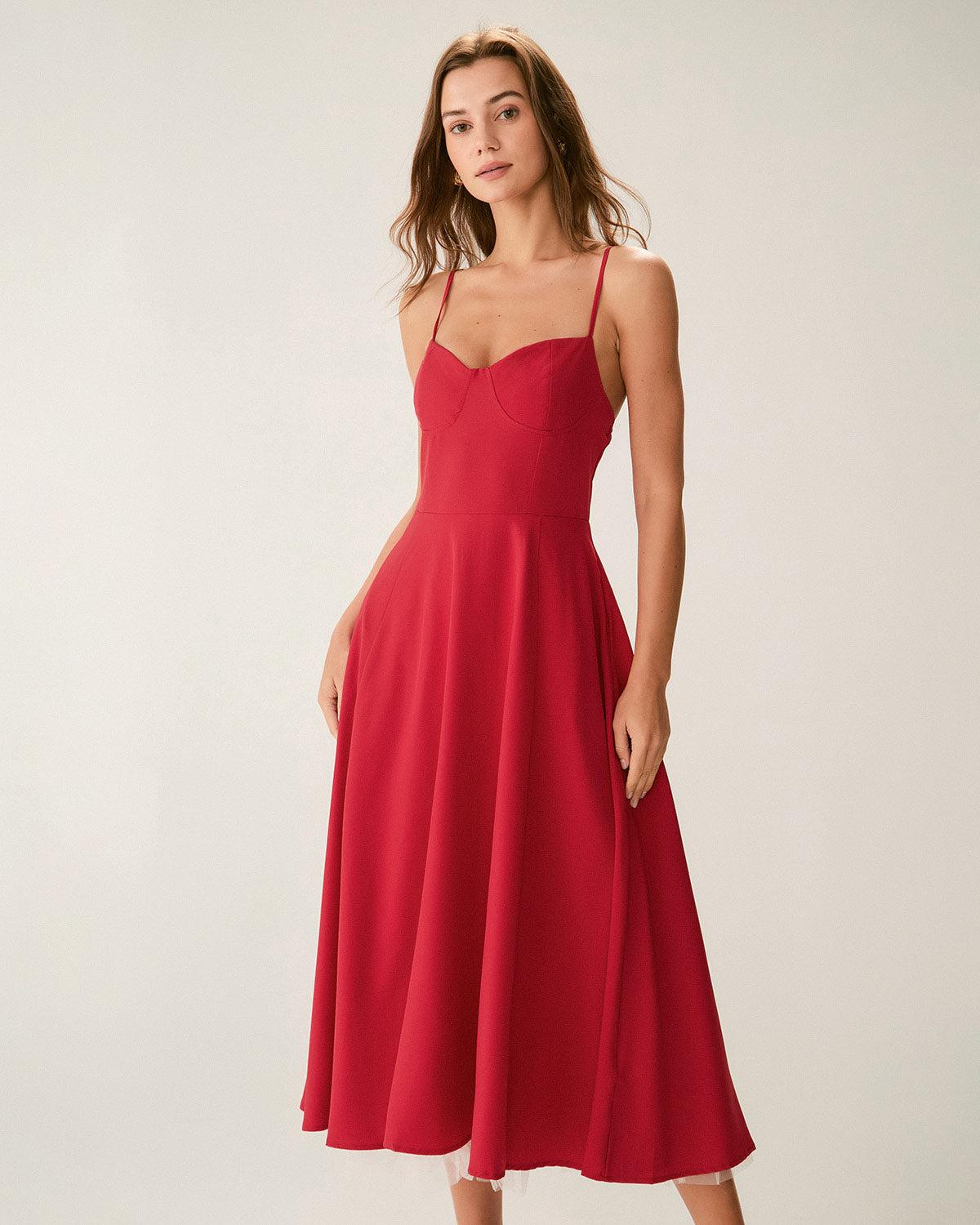 Red Sweetheart Neck Slip Maxi Dress