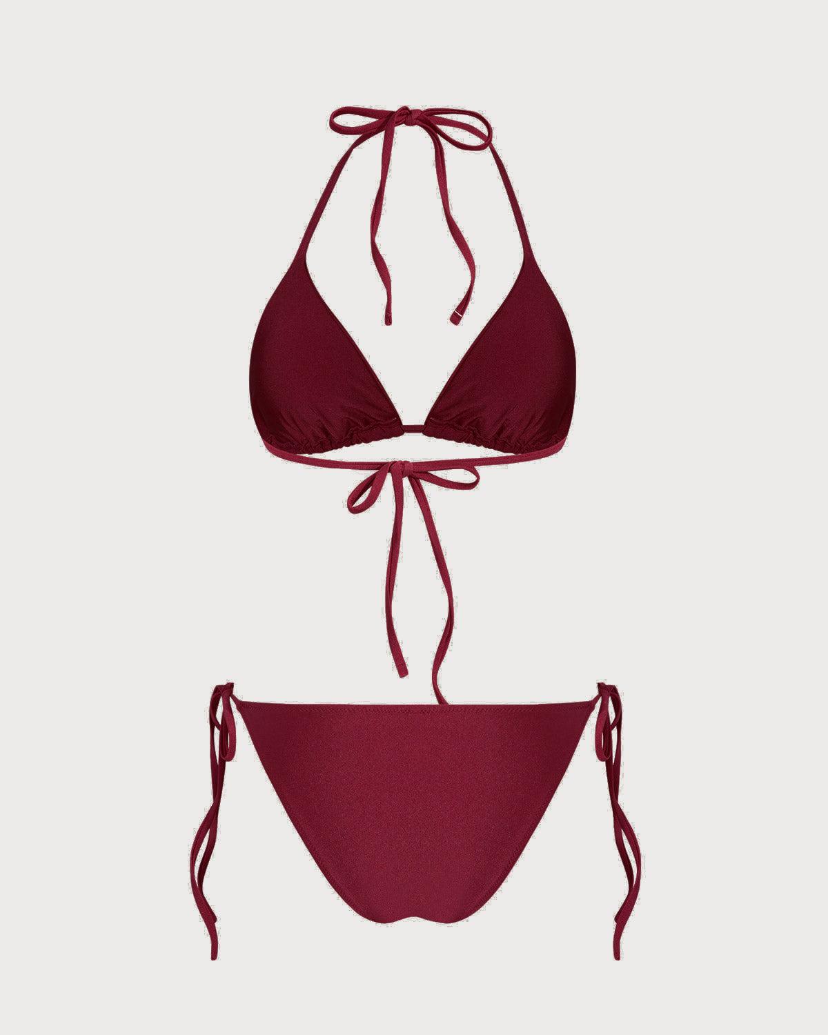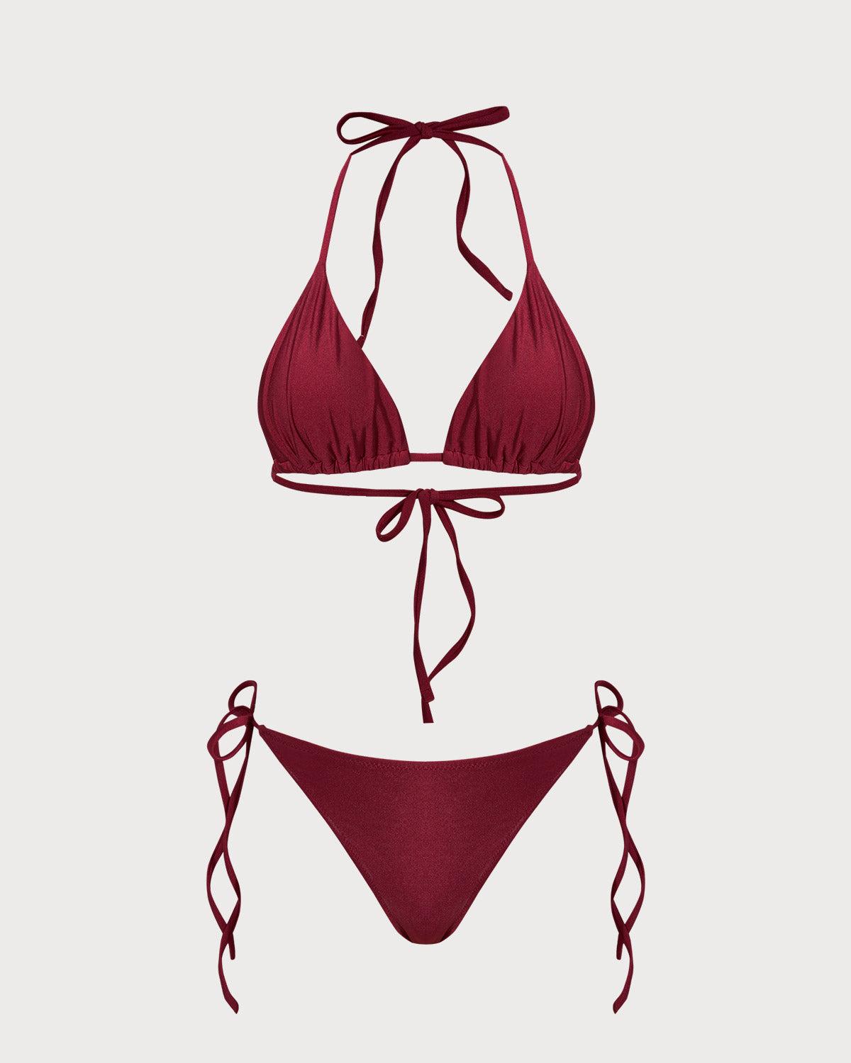 - Back Neckline: Strappy - Fabric Stretch: High Stretch - Waist: Natural Waisted - Closure Type: Drawstring - Pattern Type: Solid - Neckline: V Neck - Fabric: Polyamide 82.0%,Spandex 18.0% - Lining: Polyamide 82.0%,Spandex 18.0% - Leg Opening: High Cut Leg - Padding: Removable Soft Cups - Bottom Coverage: Minimal Bottom Coverage - Bra Coverage: 3/4 Cup - Top Style: Triangle - Pattern Style: solid
