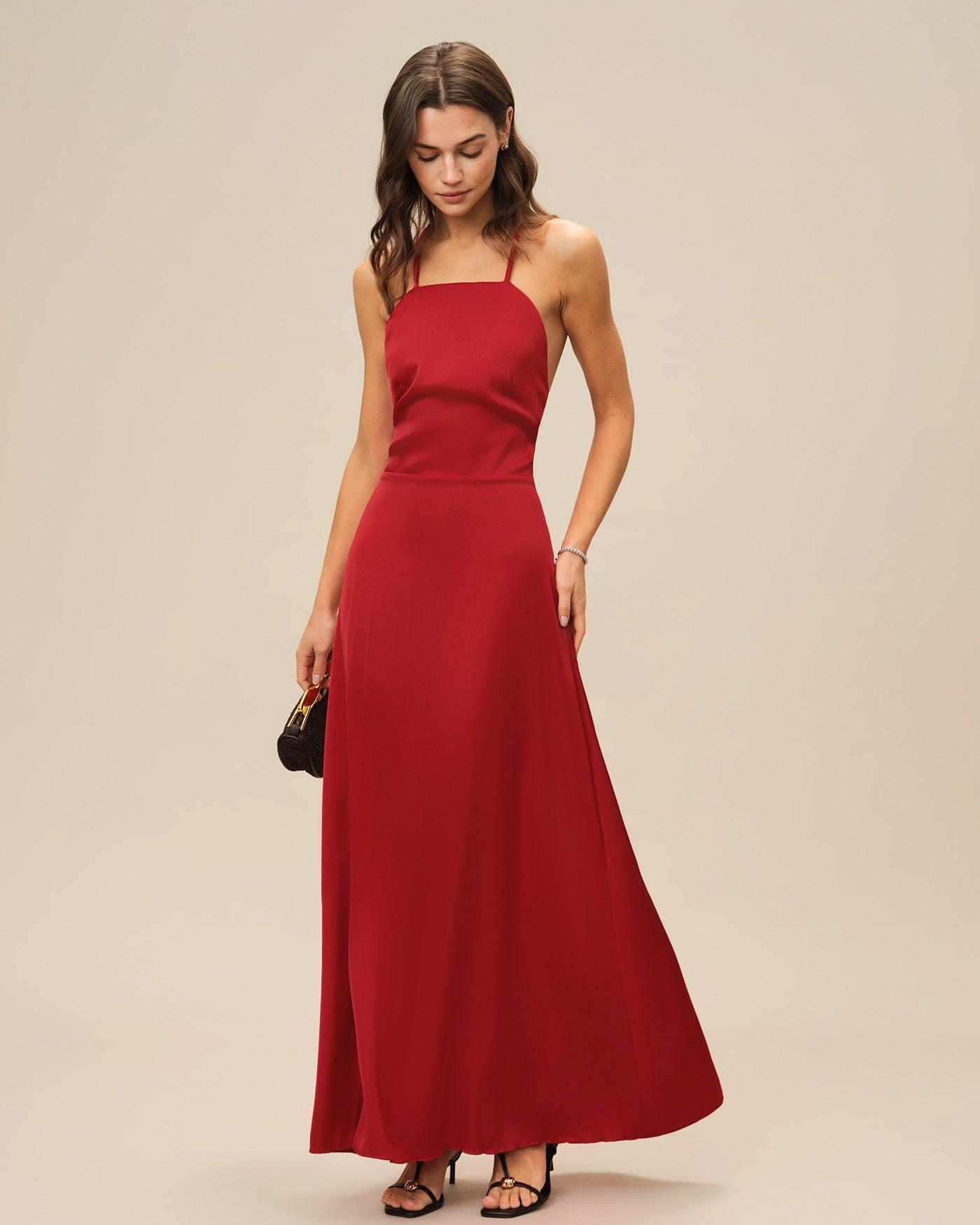 - Occasion: special occasion - Style: prom - Season: Summer, Spring - Back Neckline: X Cross - Fabric Stretch: No Stretch - Waist: Natural Waisted - Sleeve Length: Sleeveless - Sleeve Type: Sleeveless - Pattern Type: Solid - Embellishment: Zipper, Tie - Neckline: Straps - Dress Type: Slip - Silhouette: A-Line - Fabric: Polyester - Material: Polyester - Fabric Types(Pattern Style): solid