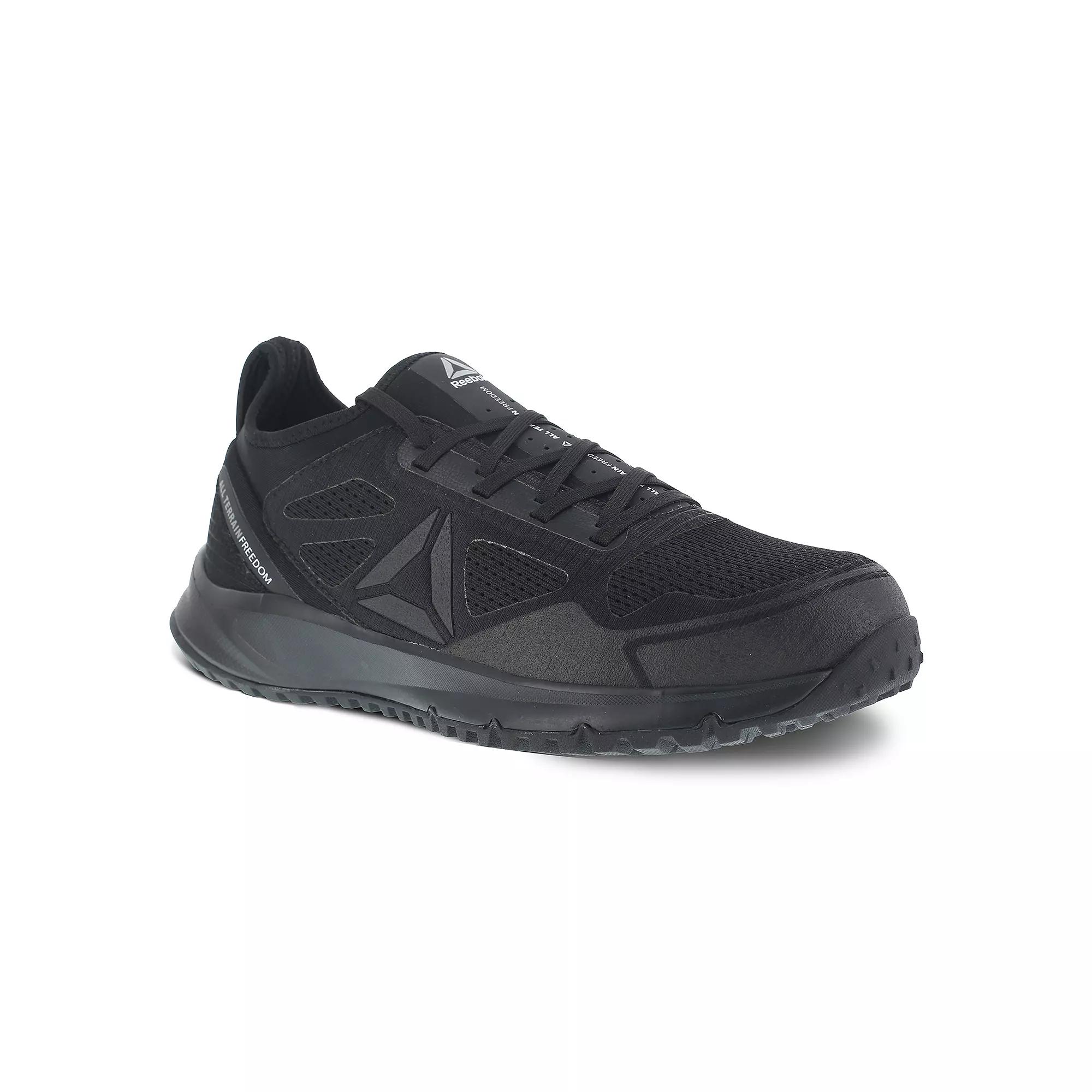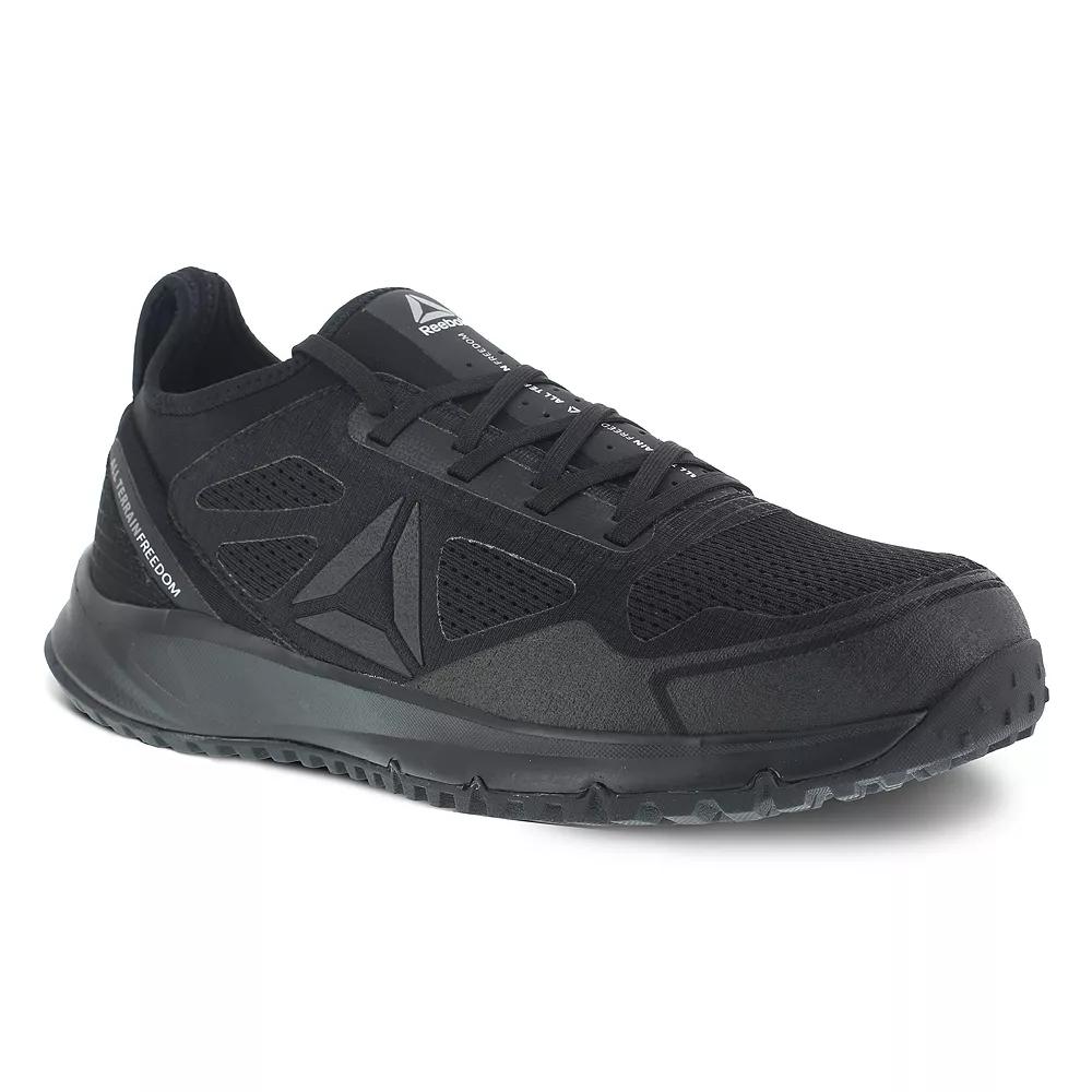 Tackle any terrain and unpredictable hazards with the All Terrain Work trail shoe. Athletic-inspired oxford with static dissipating dual-resistor protection. Lace-up closure with a steel toe that meets ASTM F2413 I/C (Impact and Compression) standards and EH (electrical hazard) safety standards. Mesh and ripstop fabric upper. No exposed metal on upper. Seamless neoprene bootie interior keeps debris out. Removable MemoryTech memory foam cushioned footbed. Slip-resistant rubber outsole meets and exceeds MARK II Standard of .54 oily/wet. Imported. Measurements: Weight: 1 lb 5 oz Product measurements were taken using size 11, width D - Medium. Please note that measurements may vary by size.