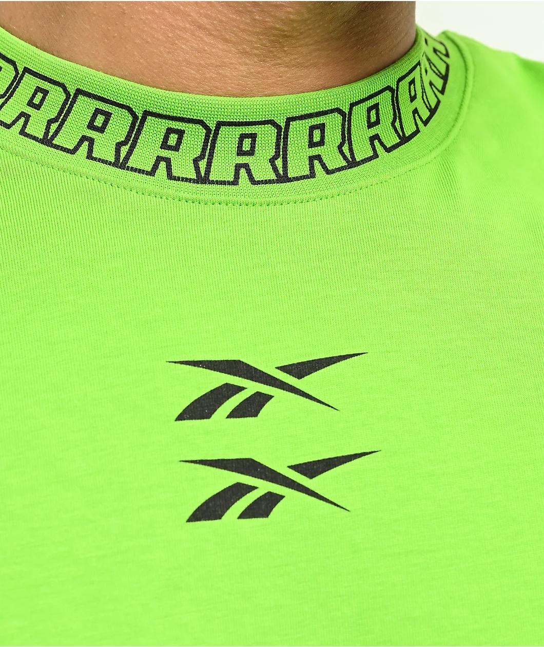 Part of Reebok's collaboration with Puerto Rican rapper Anuel, the lime green t-shirt arrives in a lightweight 100% cotton construction with screen-printed graphics on the front and back. Made with a special Speedwick sweat-wicking fabric, the front