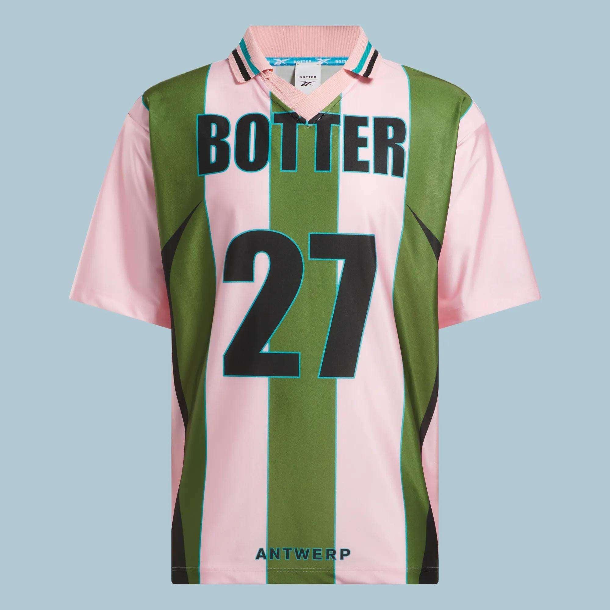 A vintage-inspired soccer jersey designed in collaboration with BotterGame day or any day, this Botter x Reebok soccer tee brings bold style to your training rotation. Lightweight polyester fabric feels smooth and breathable, whether you're practicing or relaxing. A twist on tradition, it reverses the layout of classic jerseys with a crest on the back.