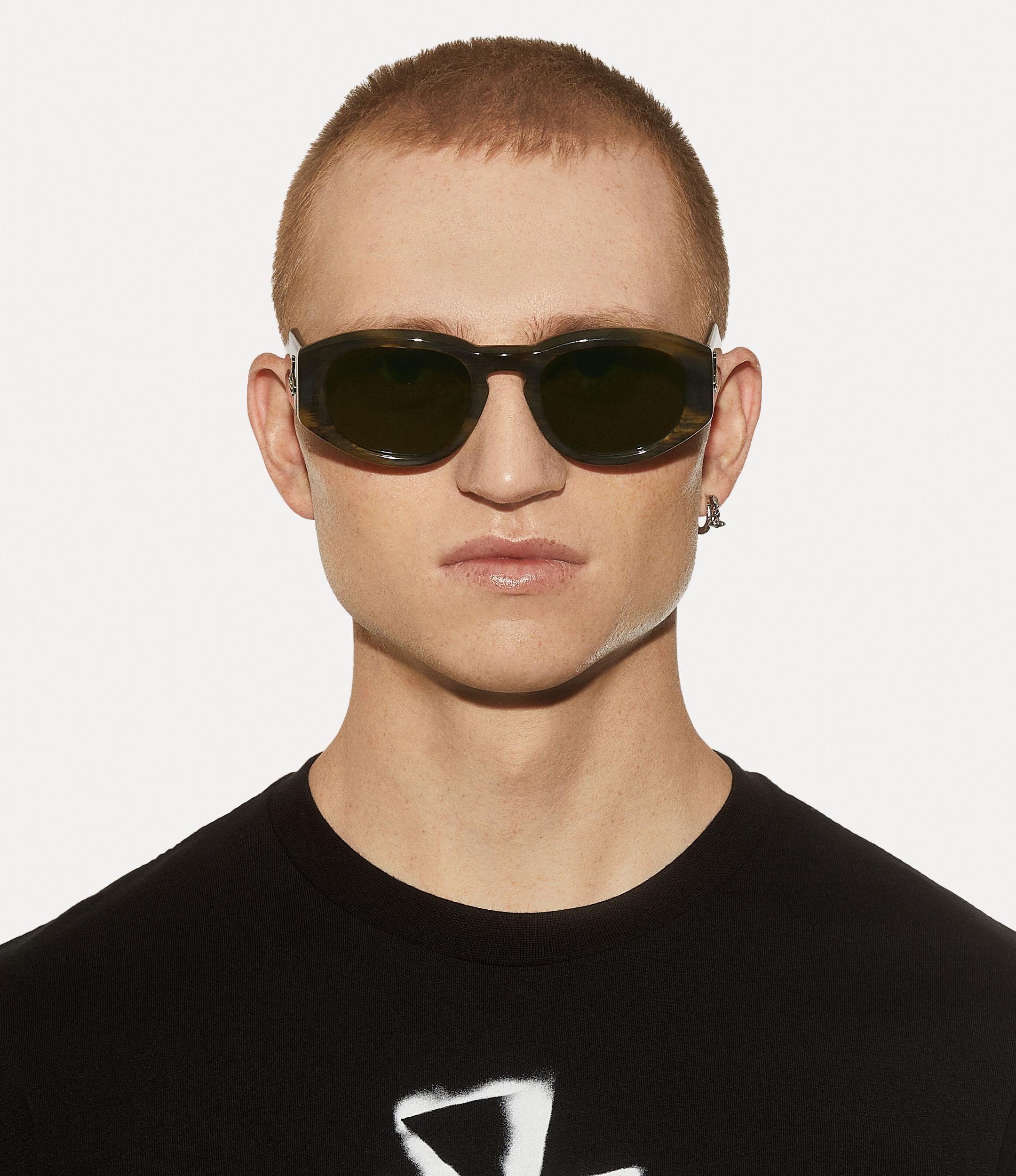 The Reed sunglasses feature vintage-inspired oval frames and green horn-effect trims - influenced by the charm of photographs from the 1950s and 1960s, as well as bygone underground icons of culture and music from the 1980s. The pair offer polarised lenses that provide UV protection, decorated with a two-dimensional metal orb detail at the temples - embodying the ethos of taking the past into the future.