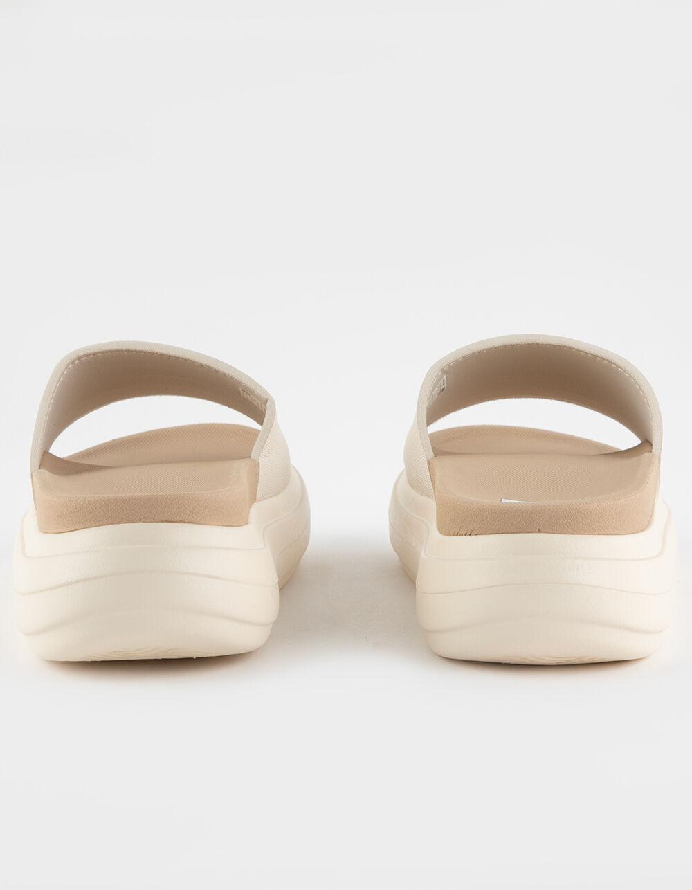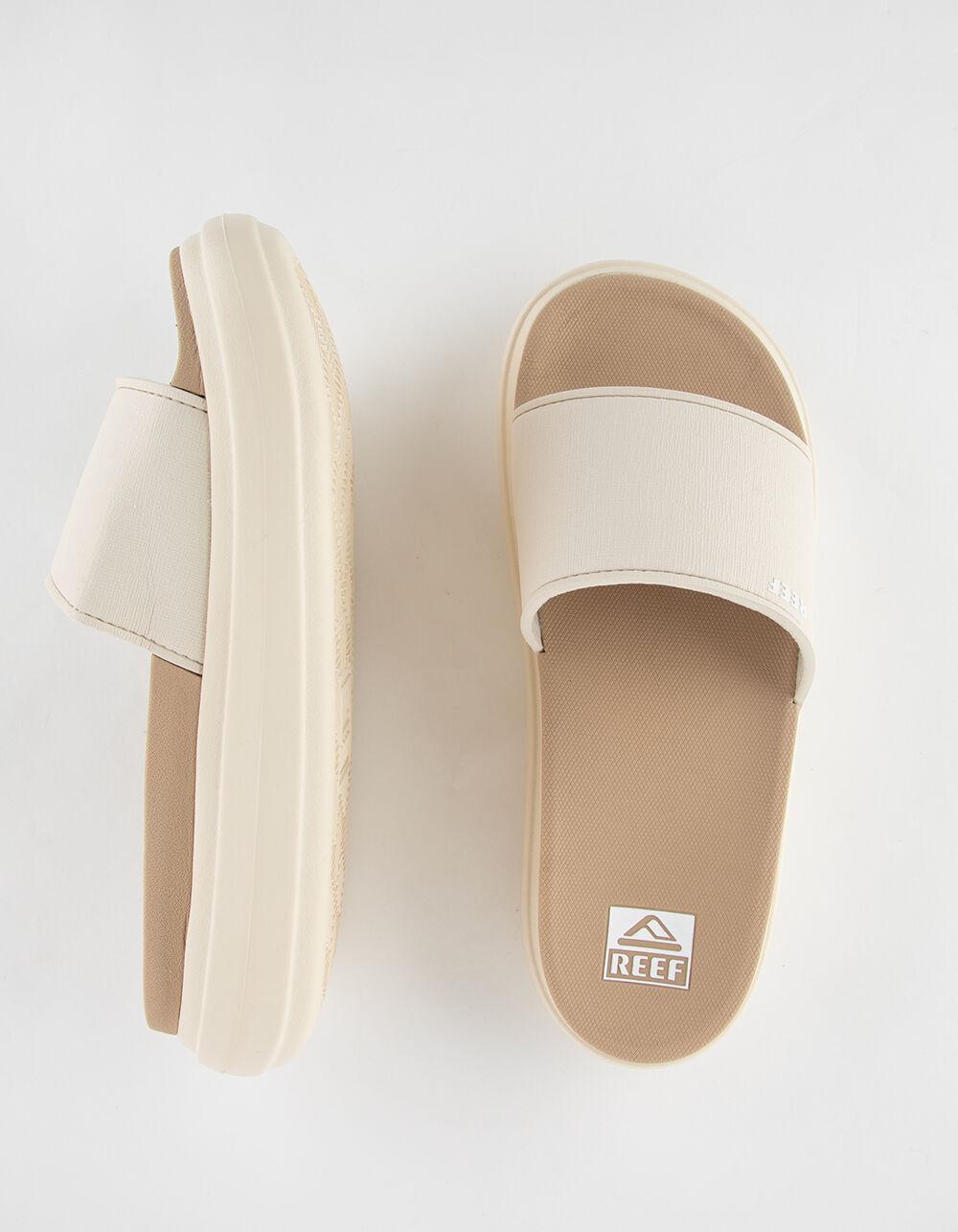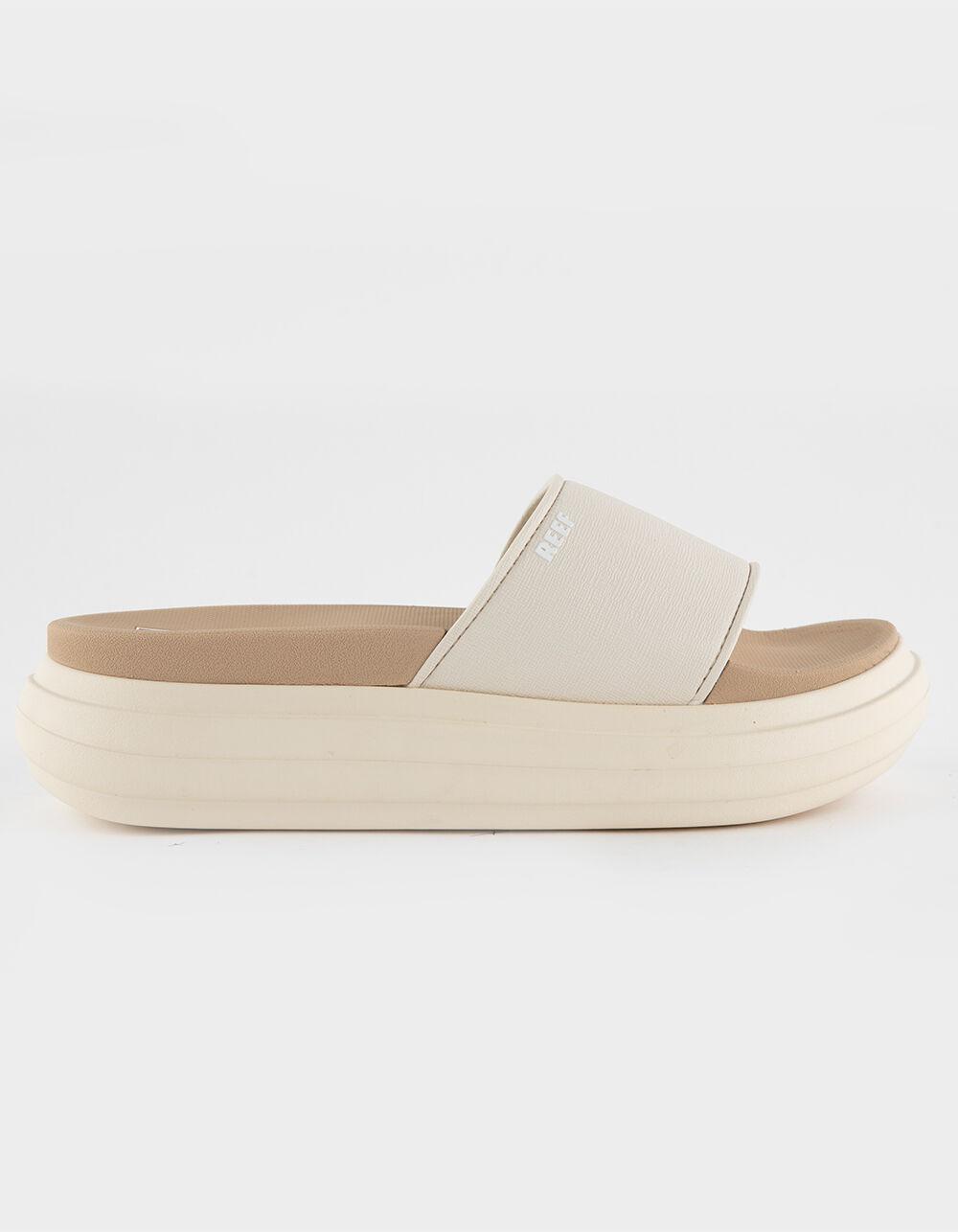 Reef Cushion Bondi Bay Platform Sandals. A super-cushy slide with an elevated look and feel. The Cushion Bondi Bay pairs a rebounding EVA outsole and footbed with over-the-top comfort. Water-friendly, flexible, and lined with soft jersey. Water friendly EVA straps that can flex and bend with your foot lined with soft jersey. Extremely lightweight, water friendly and flexible footbed featuring the perfect blend of cushion and rebound support featuring a perfect medium contour for your all day walking needs. Lightweight, Non-marking injected outsole that provides stability. The rounded sidewall detail and added height ensures this sandal can be worn with anything for any occasion. Imported.