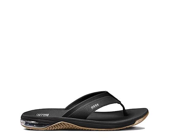 For those that stay close to the beach we present the water-friendly style and high-rebound comfort of the Reef Anchor sandals. Flip-flops in a stylish, cushioned silhouette. Water-friendly synthetic upper straps with hot melt detailing and super soft padded jersey lining. Compression molded, high-rebound EVA footbed with airbag cushioning for all-day comfort. Non-marking rubber outsole for grippy traction and durable wear. PVC-free construction. Imported. Measurements: Weight: 8 oz Product measurements were taken using size 9, width D - Medium. Please note that measurements may vary by size.