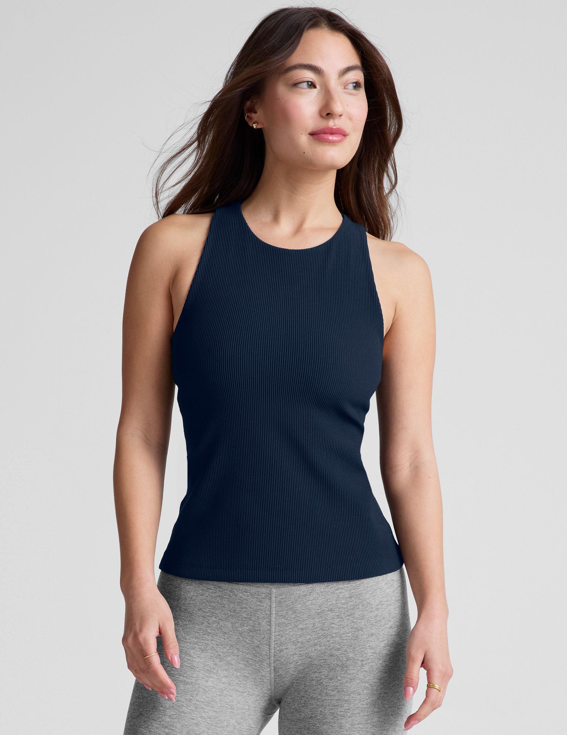 The same cut as our bestselling Refocus tank (the top you've been wearing to the studio for *years*) now in our Good Form Rib fabric. Soft, smoothing ribbed texture, hugs-just-right compression, moisture wicking, and the power to go from active moments to all-day wear without missing a beat. High neckline for extra coverage Racerback detail Performance lining shelf bra High hip length Designed to uniquely flatter every shape Every style we produce is wear-tested on our in-house team to ensure the best fit in every size