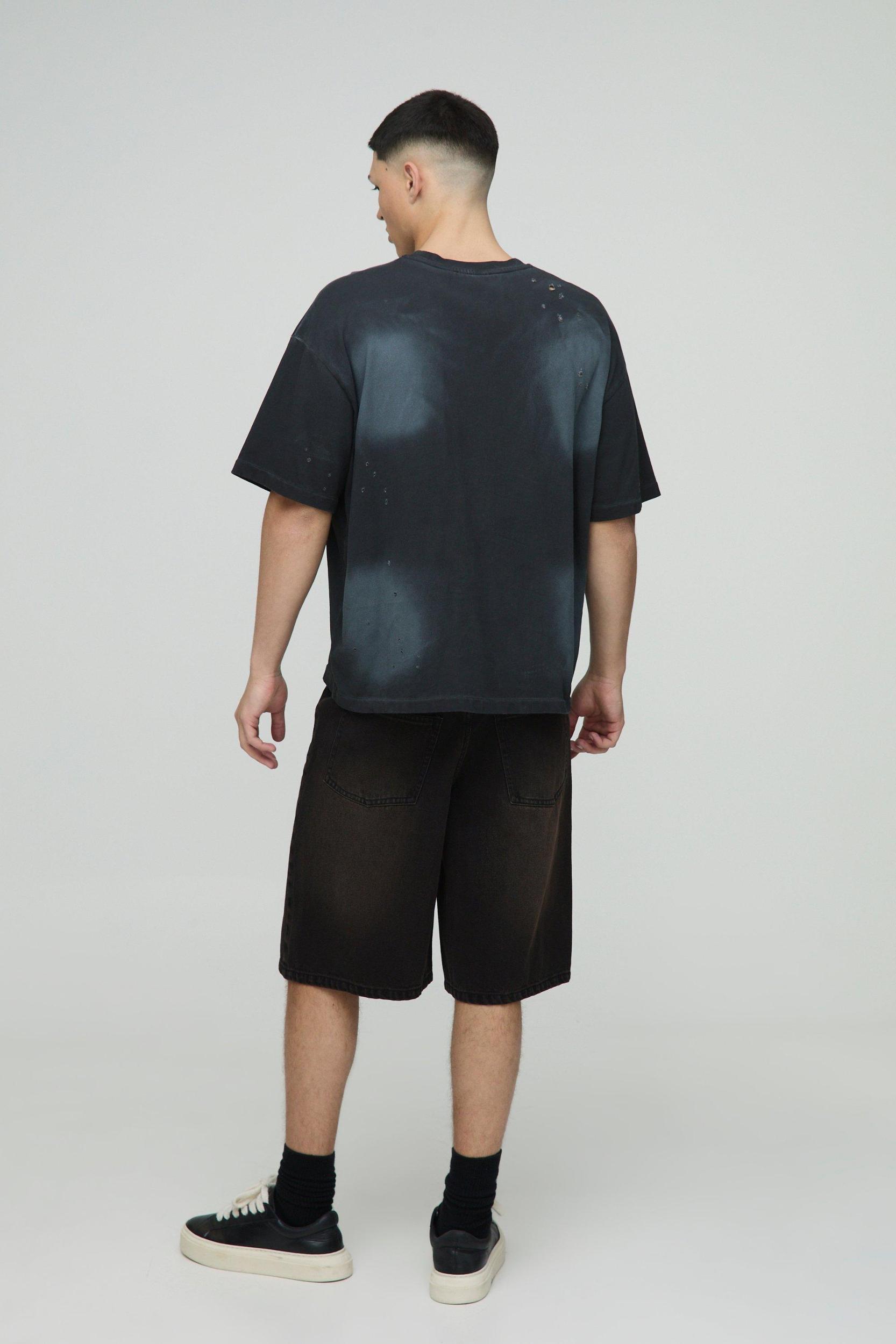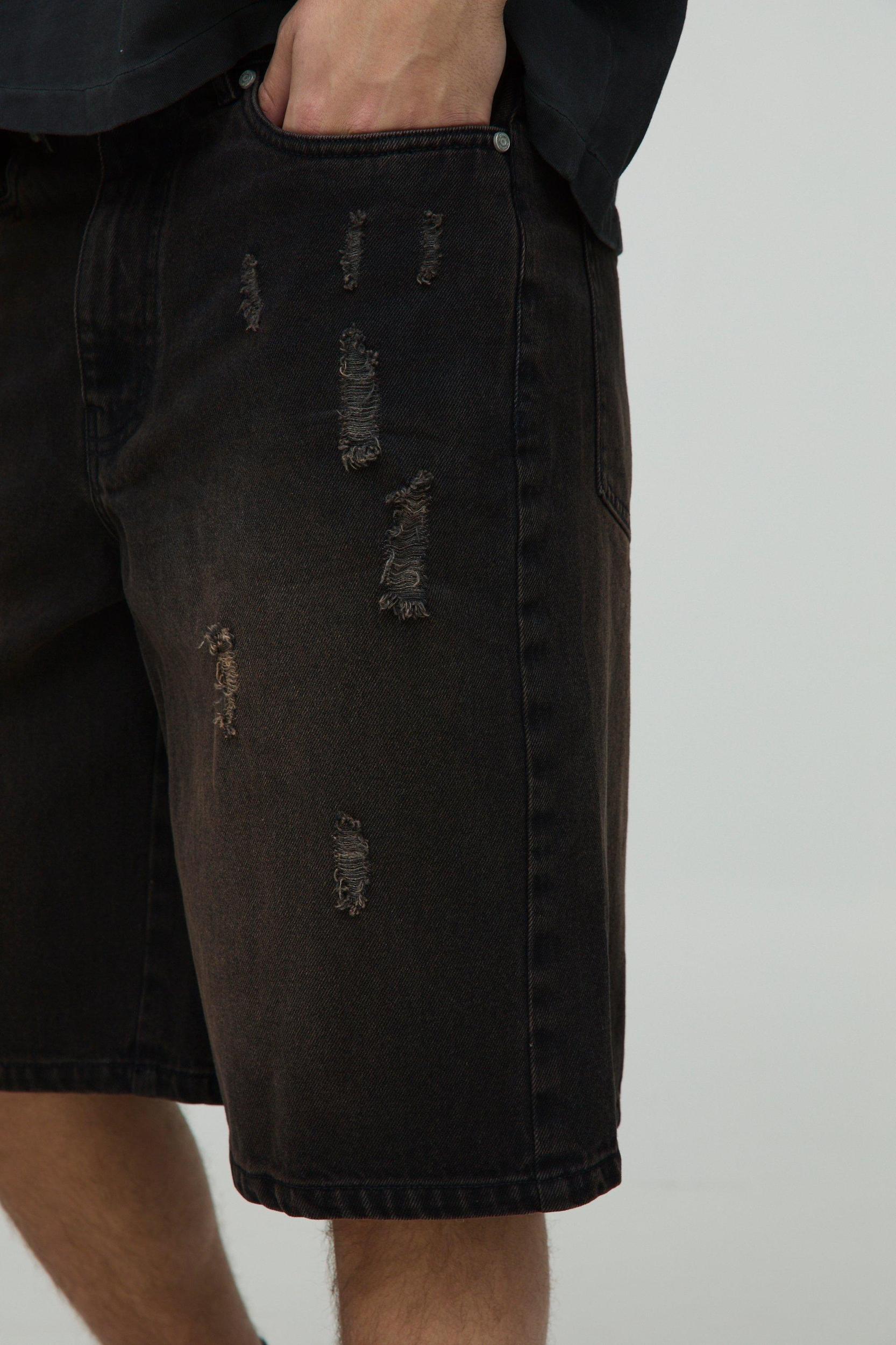 Regular Brown Washed Ripped Denim Jorts | boohooMAN USA