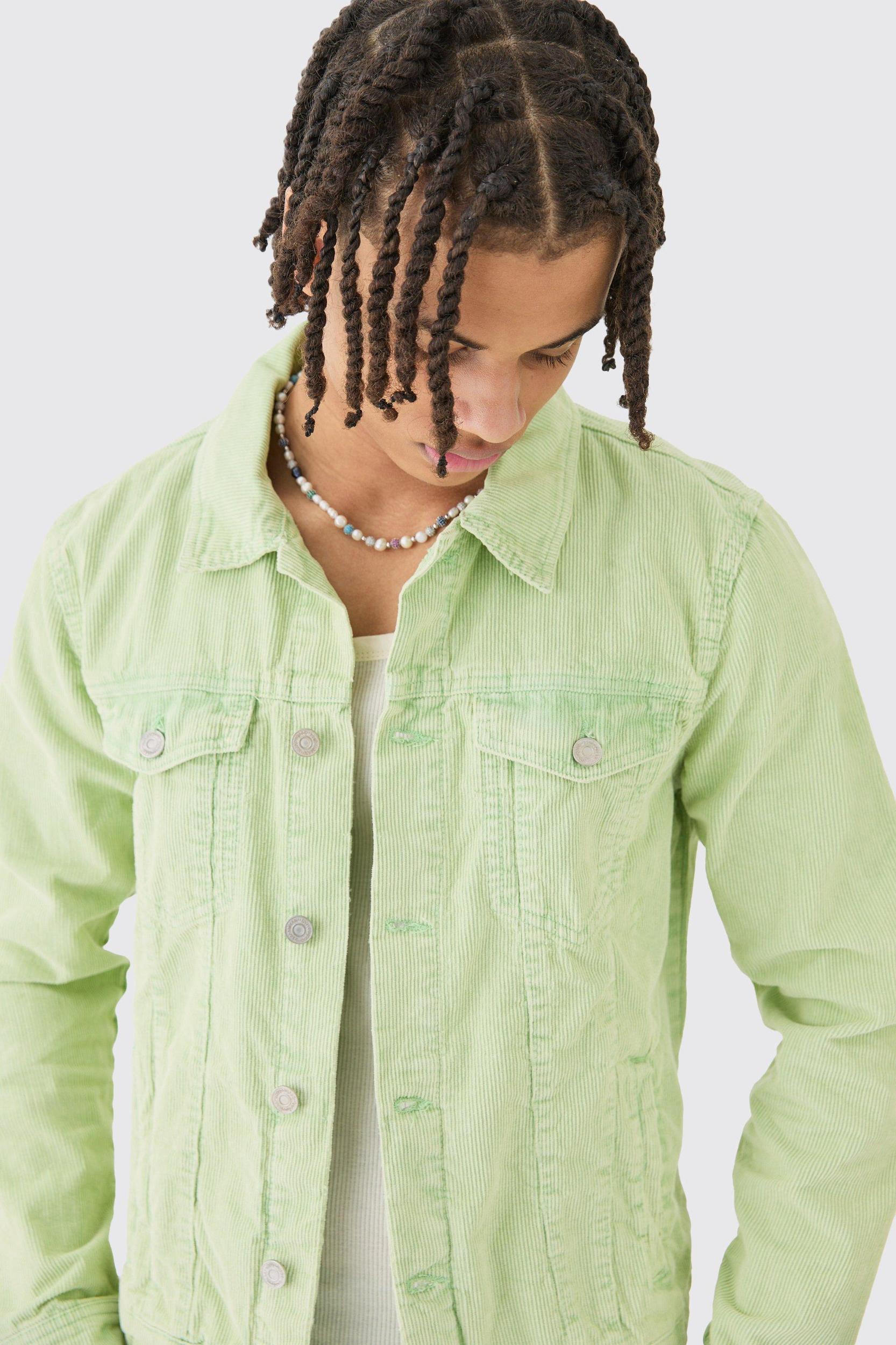 Mens Green Regular Cord Jacket In Sage - Introduce some subtle dapperness into your day-to-day lineup with a shirt. Youll be surprised at how easy it is to throw together a sophisticated ensemble with a plain shirt from our extensive range. If you want to look sharp by keeping it simple, pair a checked shirt with a blazer and skinny jeans. Finish off with a pair of brogues or Chelsea boots for an outfit that delivers dapperness from the office to the bar. f you are looking for the ultimate summer outfit, our selection of printed shirts will make sure youll get noticed.Style: Cord JacketDesign: PlainFabric: CordDetail: Fabric InterestLength: CroppedNeckline: RevereFit: BoxySleeve Length: Short Sleeve