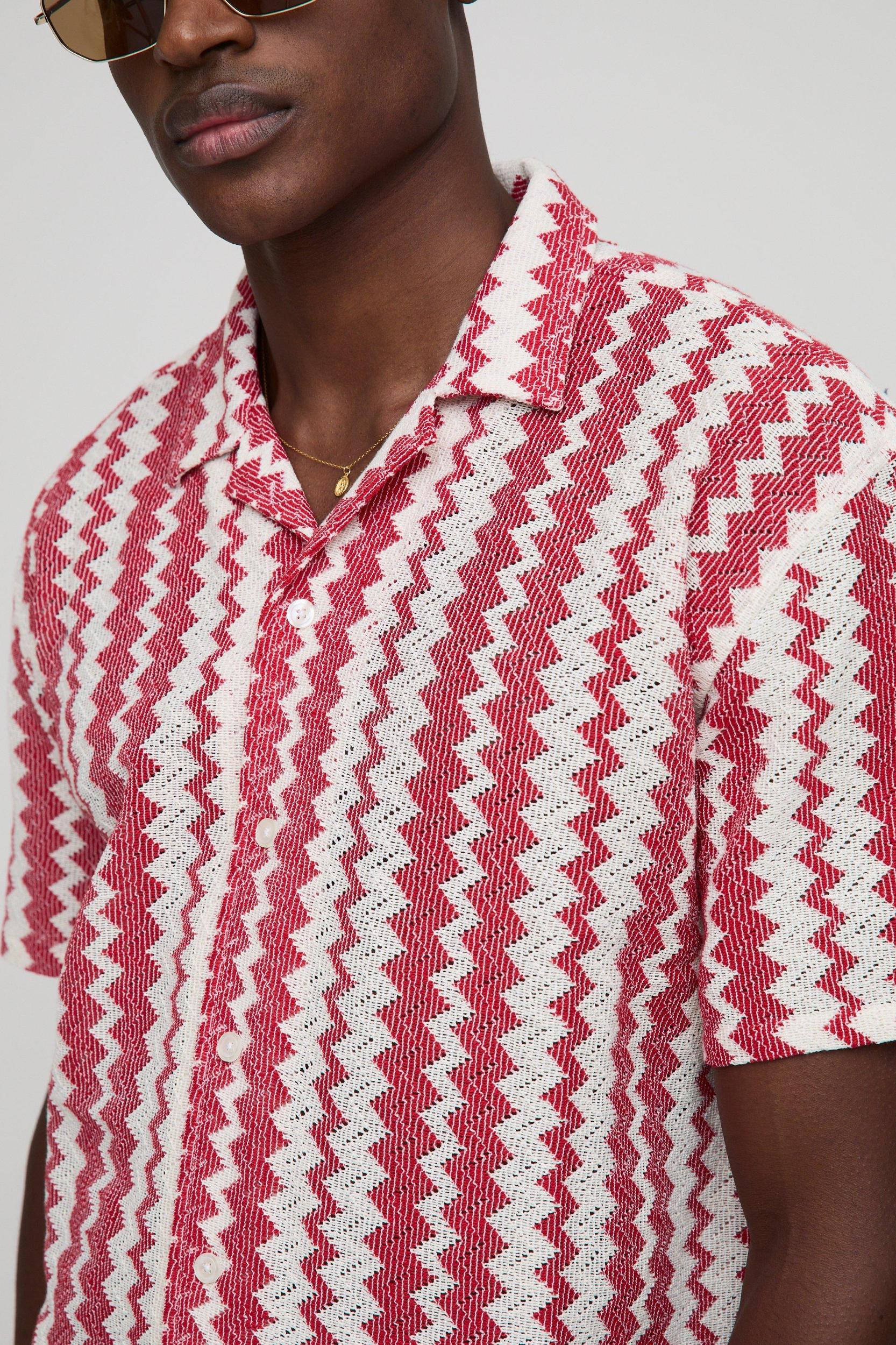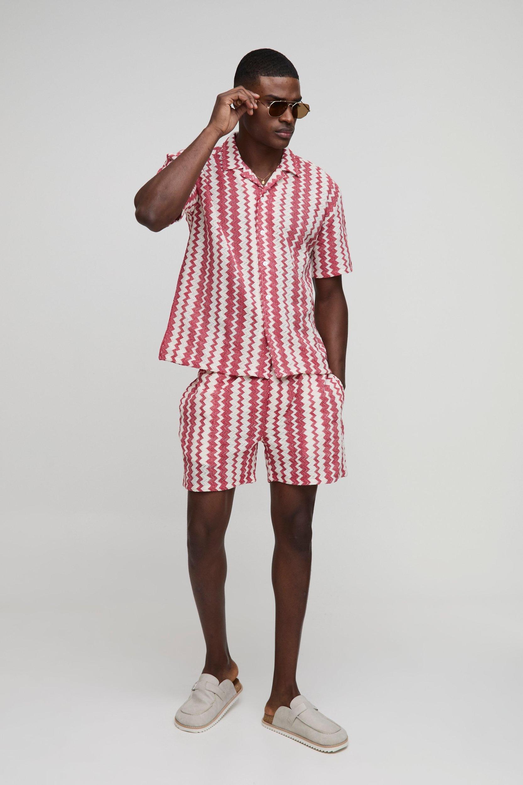 Regular Drop Revere Zig Zag Open Weave Shirt And Short | boohooMAN USA